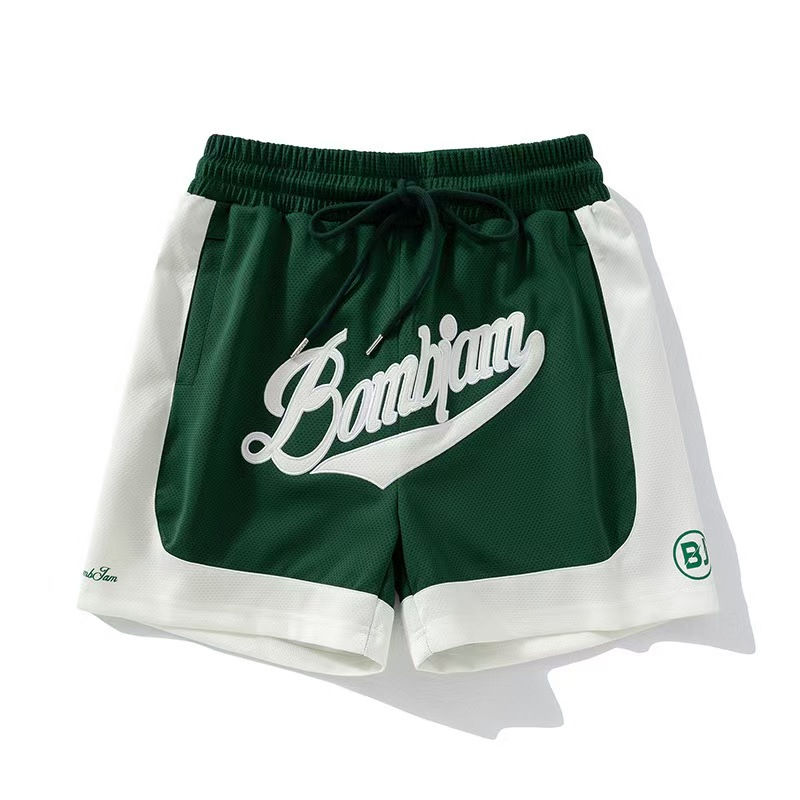 กางเกงบาสเก็ตบอลตาข่ายขายส่ง ความยาวระดับเข่า คุณภาพสูง กางเกงบาสเก็ตบอลตาข่ายสั่งทำโลโก้ กางเกงบาสเก็ตบอลสไตล์เรโทรสำหรับผู้ชาย ปักลาย