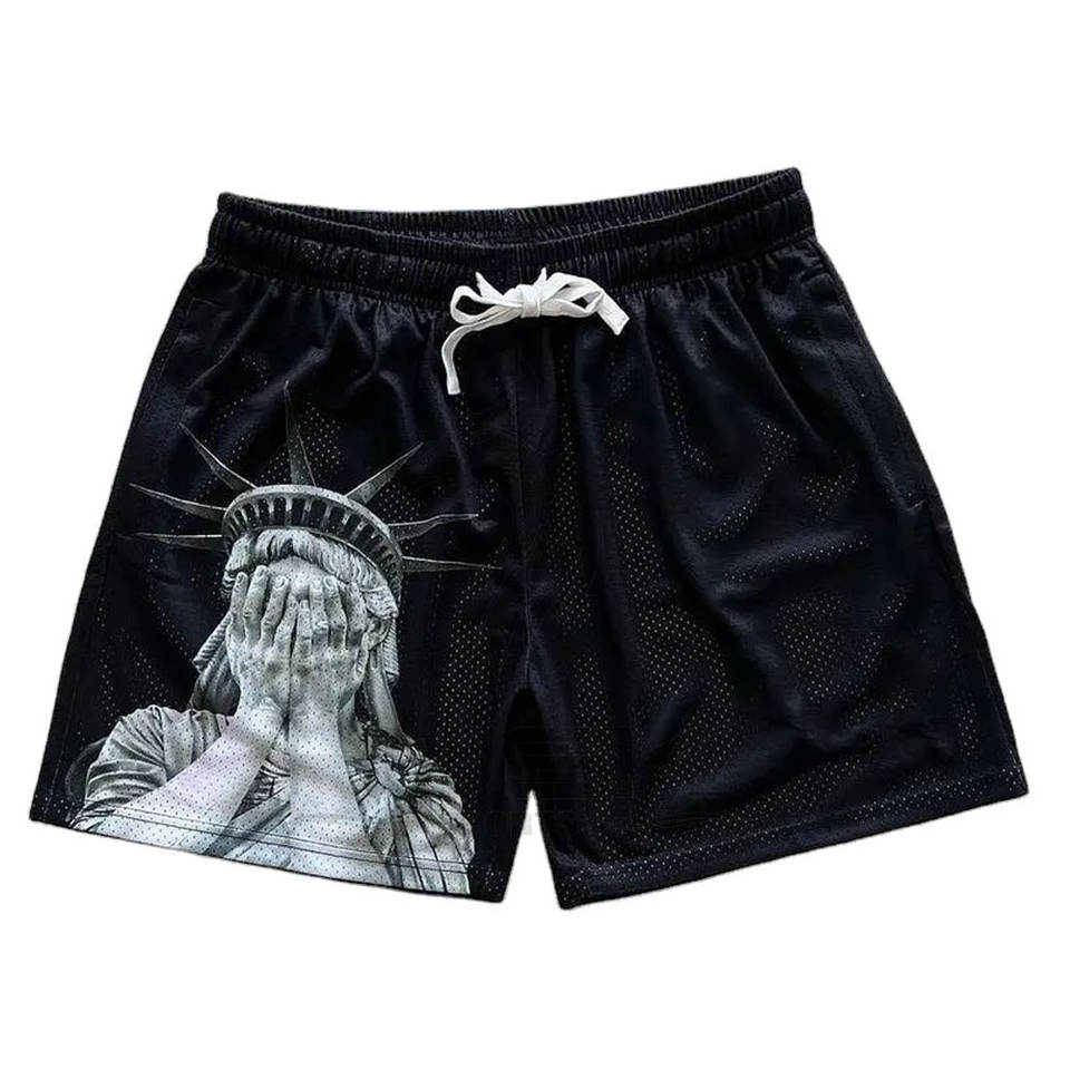 กางเกงขาสั้นออกกำลังกายผ้าตาข่าย มีกระเป๋าข้างลึกสองช่อง ทรงพอดีตัวสำหรับผู้ชาย ดีไซน์แบบกำหนดเอง พิมพ์ลายแบบ Sublimation สไตล์ High Street สีพื้น