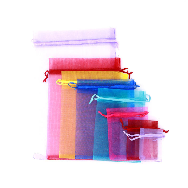 ถุงผ้าออแกนซ่าตาข่าย พิมพ์โลโก้ตามสั่ง ถุงใส่เครื่องประดับ ถุงของขวัญแบบมีเชือกผูก สำหรับงานแต่งงาน ขายส่ง