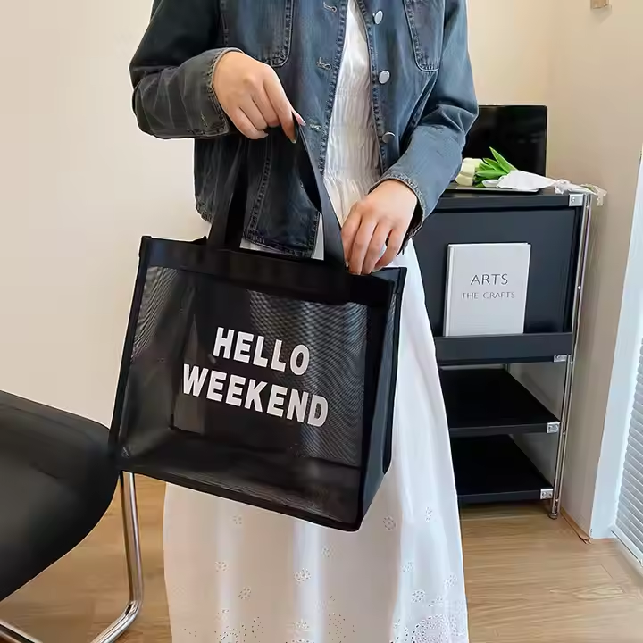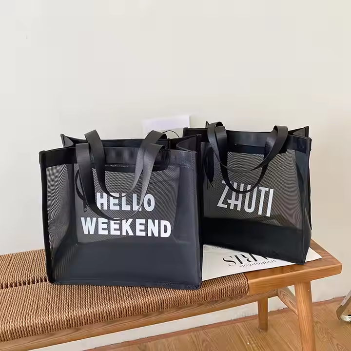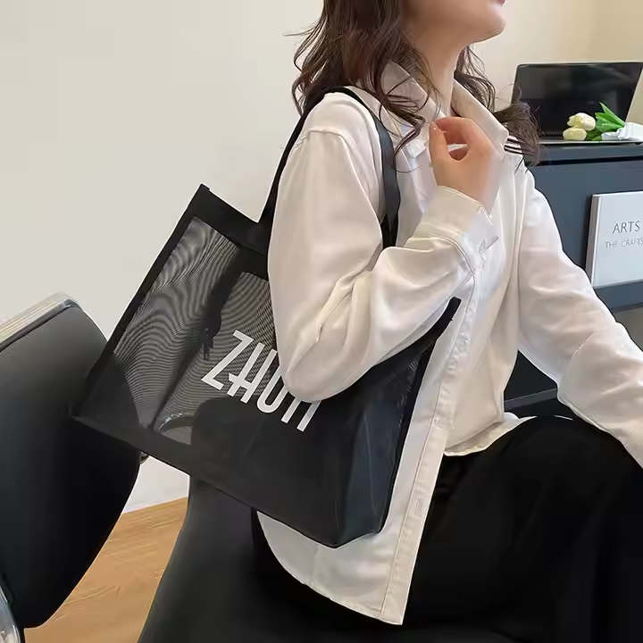 กระเป๋าช้อปปิ้งตาข่ายทำจากไนลอนความจุขนาดใหญ่กระเป๋าใส่ของชายหาดสำหรับฟิตเนสโยคะ