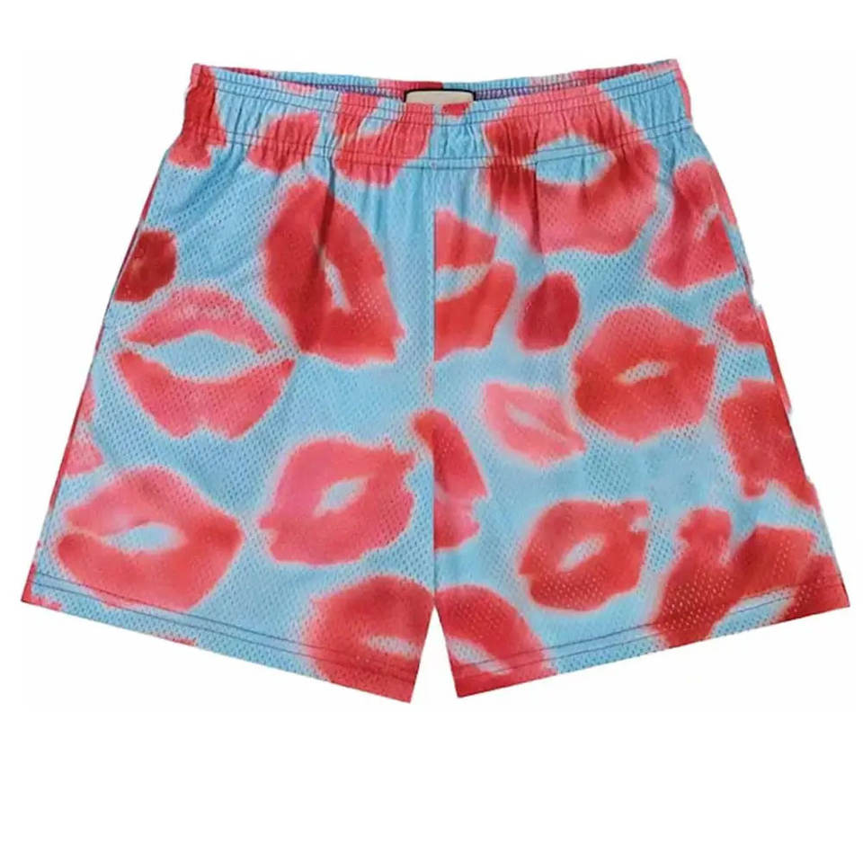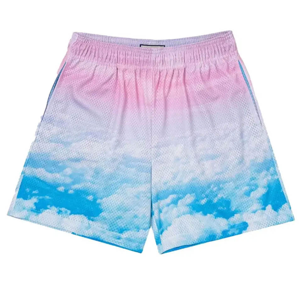 กางเกงขาสั้นตาข่ายผู้ชาย สกรีนโลโก้ได้ กางเกงออกกำลังกายฤดูร้อน ผ้าโพลีเอสเตอร์ ระบายอากาศ แห้งเร็ว