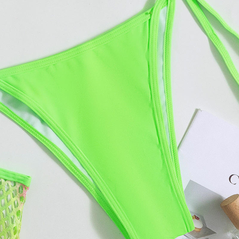 ชุดว่ายน้ำตาข่ายของผู้หญิง,ชุดบิกินี่พิมพ์ลายเซ็กซี่3ชิ้นระบายอากาศได้ดี