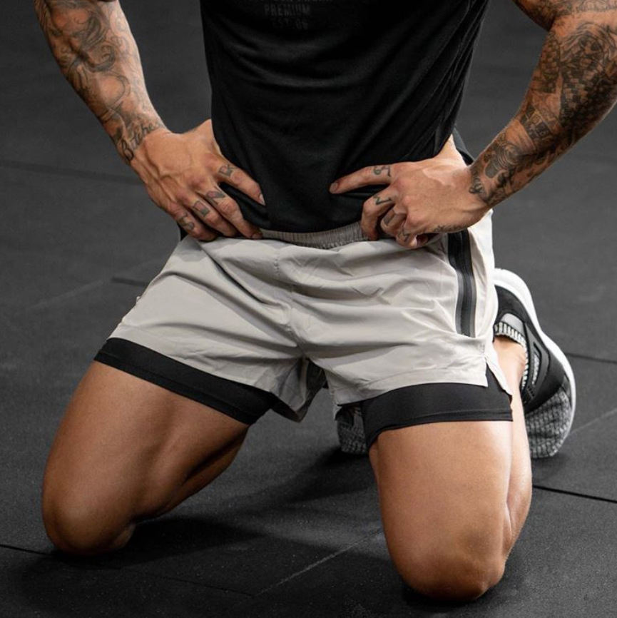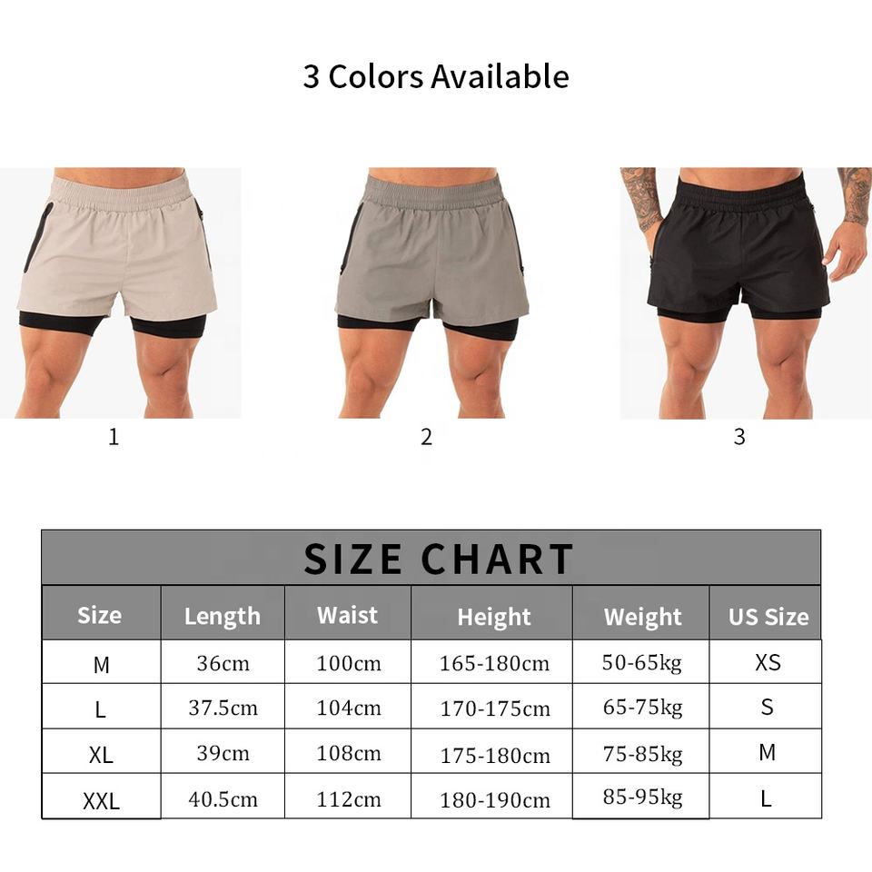 กางเกงขาสั้นตาข่ายรัดกล้ามเนื้อแบบ2 in 1สำหรับผู้ชายมีกระเป๋ามีซิปและรัดรูป