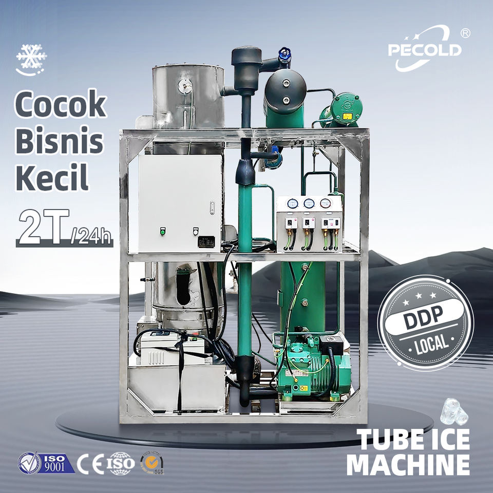 เครื่องทำน้ำแข็งหลอดขนาด 2 ตัน พร้อมปั๊มคอมเพรสเซอร์และมอเตอร์ 220V สำหรับใช้งานเชิงพาณิชย์ในท่าประมงและอุตสาหกรรมประมง