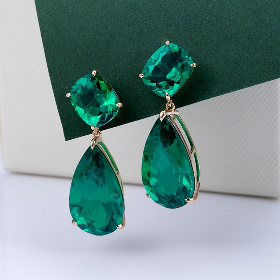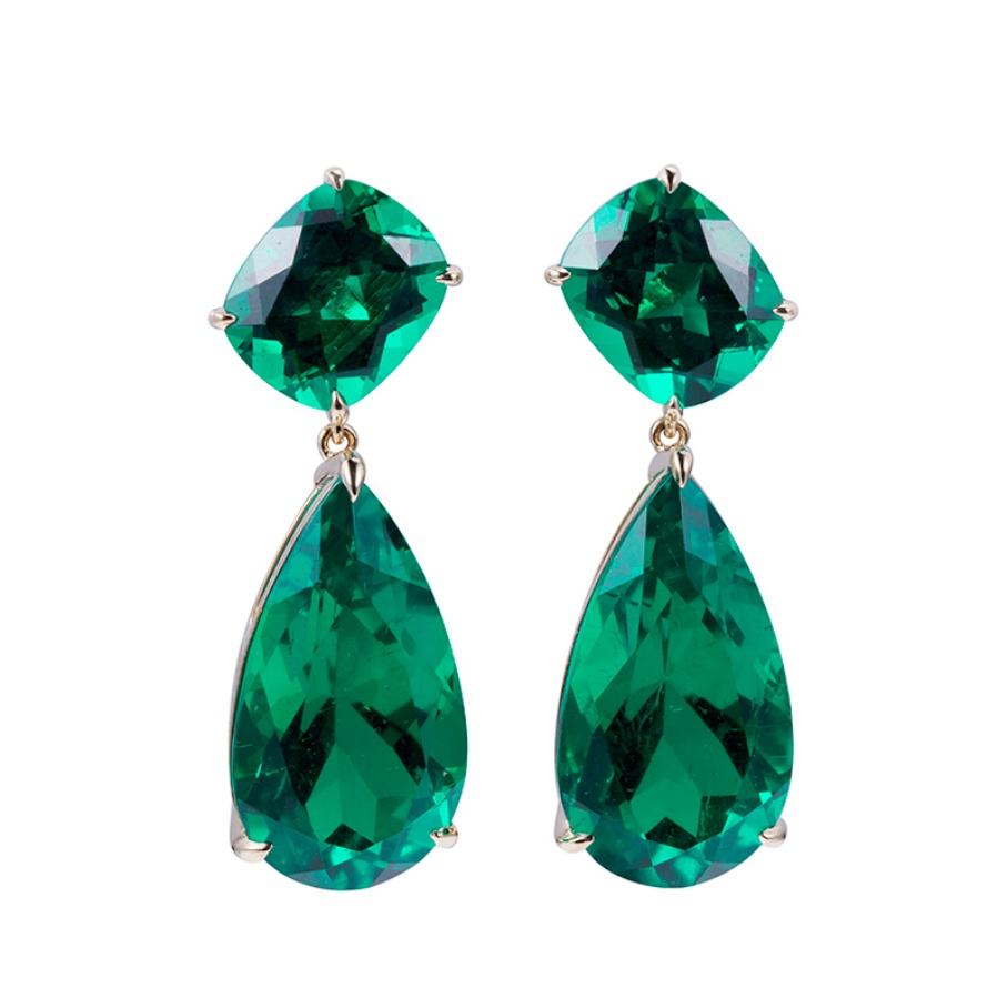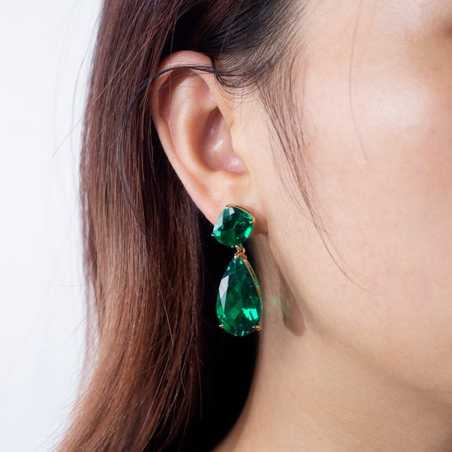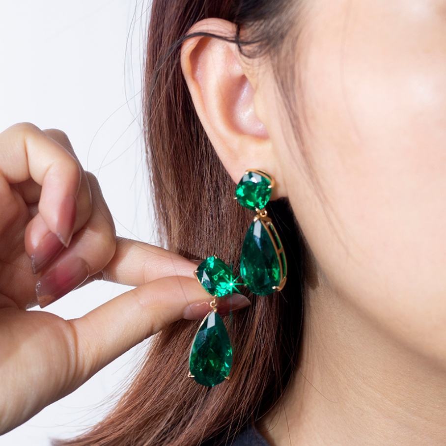 ต่างหูมรกตโคลอมเบียสังเคราะห์ 18K ของเมสซี่ งานออกแบบพิเศษ