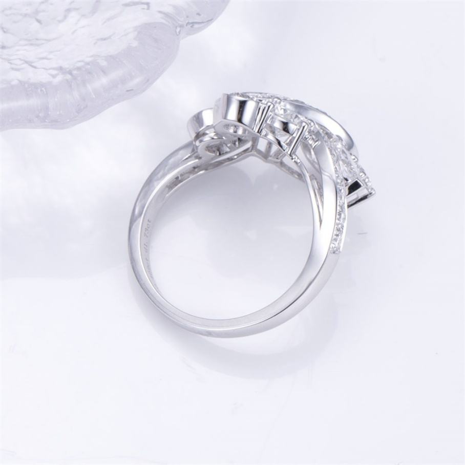 แหวนเพชรเมสซี่ ไฟน์ จิวเวลรี่ ทองคำขาว 18K ทรงกลม แหวนหมั้นเพชรแล็บสำหรับผู้หญิง