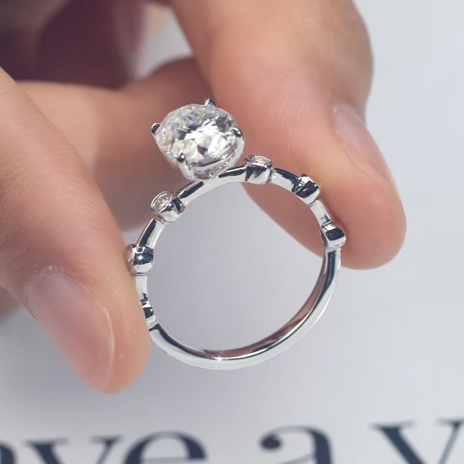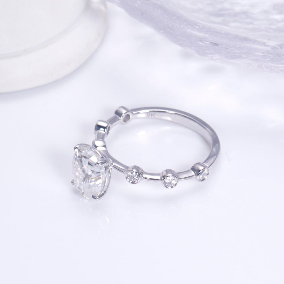 แหวนเพชรเมสซี่ ไฟน์ จิวเวลรี่ ทองคำขาว 9K ทรงรี แหวนหมั้นเพชรแล็บสำหรับผู้หญิง