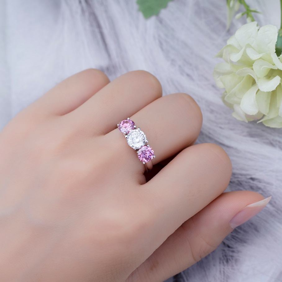 แหวนเพชรโมอิสซาไนต์ทรงกลมสีขาว 1 กะรัต ทองคำขาว 14K สำหรับผู้หญิง จาก Messi Jewelry