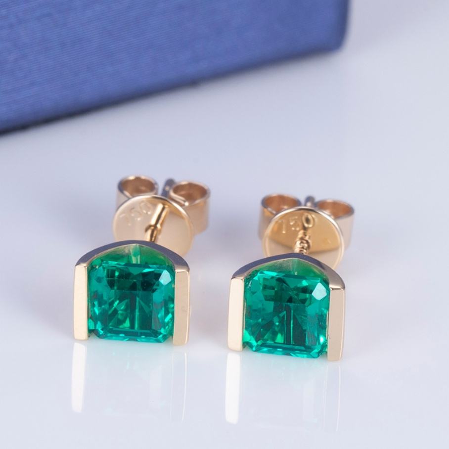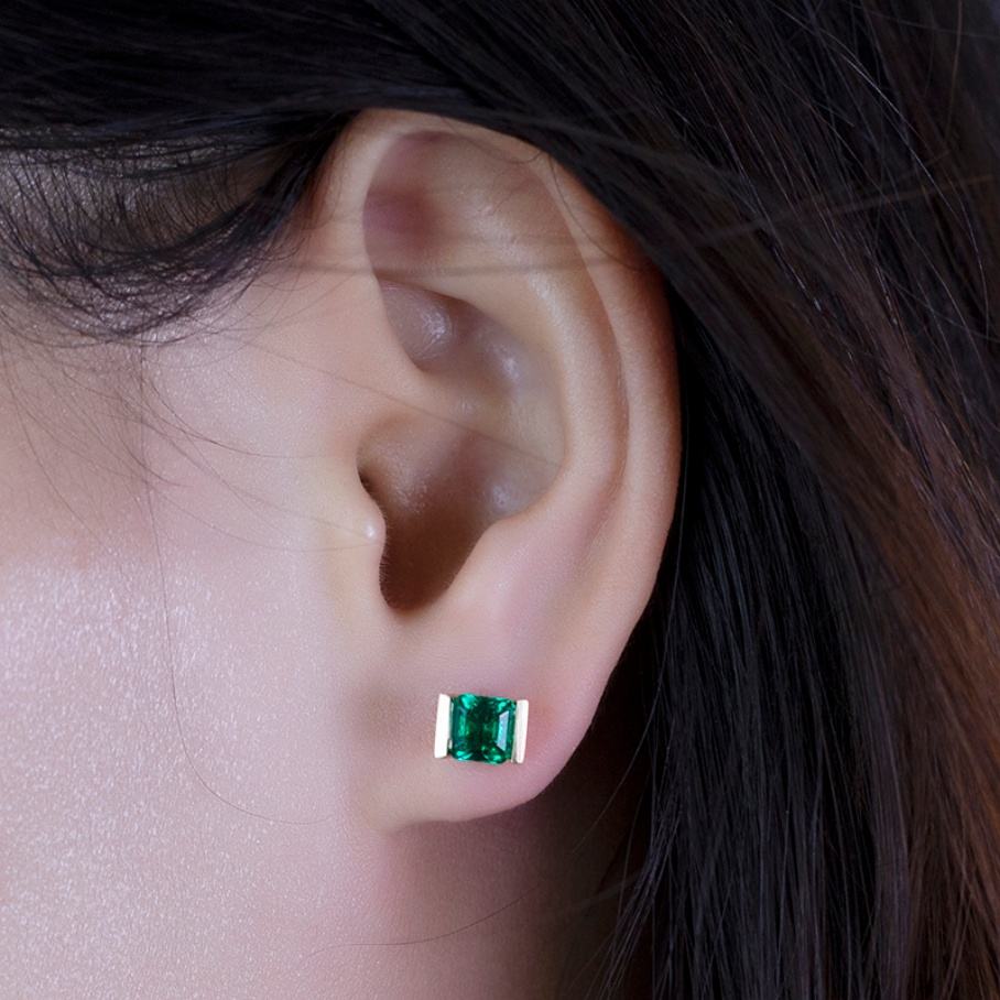ต่างหูเพชรเมสซี่ ทองคำ 18k สีเหลือง ประดับมรกตสังเคราะห์ สำหรับผู้หญิง