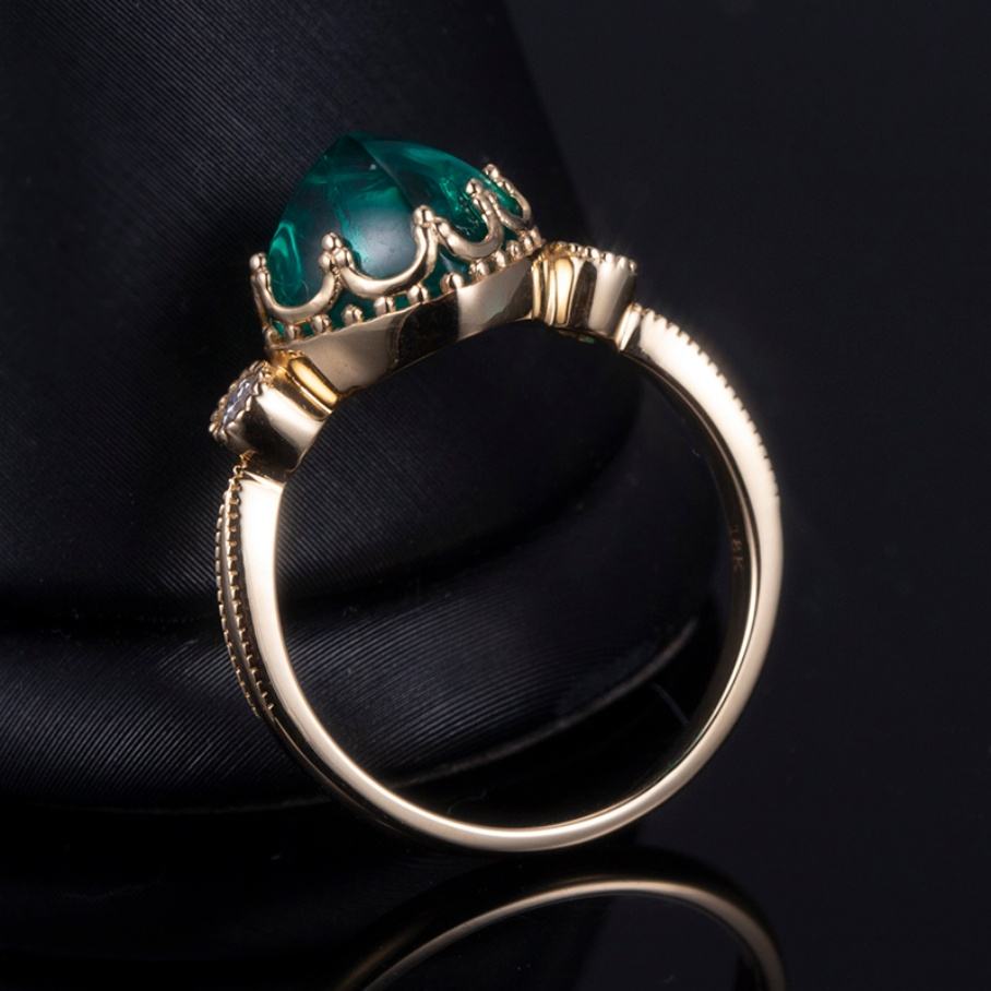 Messi Jewelry 18k Yellow Gold Sugar Loaf Cut Lab Grown Emerald
