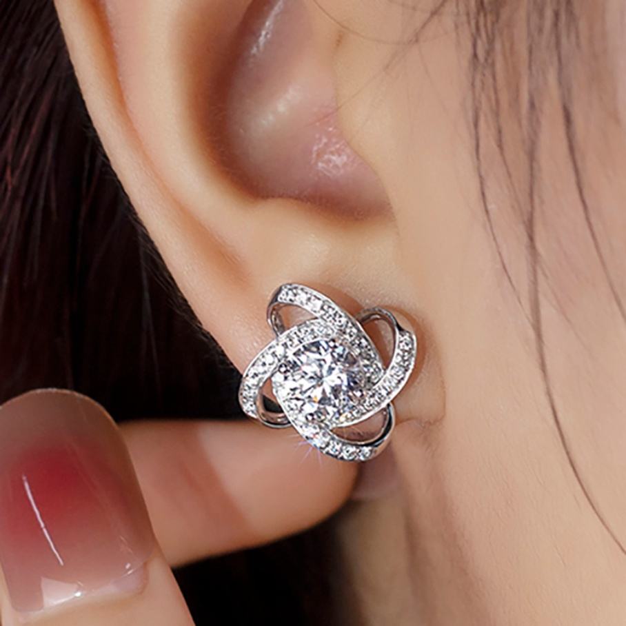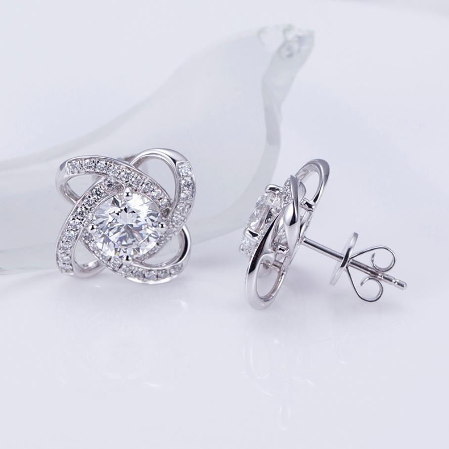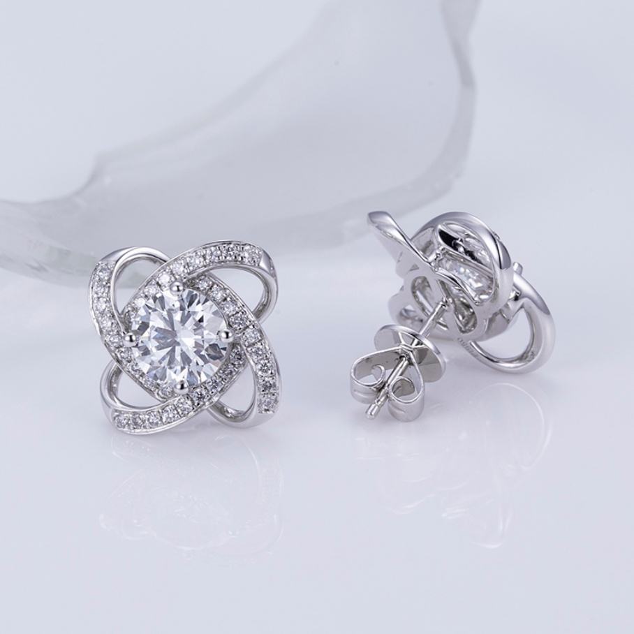 ต่างหูเพชรเม็ดเดี่ยวทรงกลุ่ม รุ่น MSE-647 ผลิตจากแพลตตินัม PT950 ประดับเพชร CVD HPHT 1 กะรัต สี D ความสะอาด VS1 เพชรเลี้ยงในห้องปฏิบัติการ สำหรับผู้หญิง