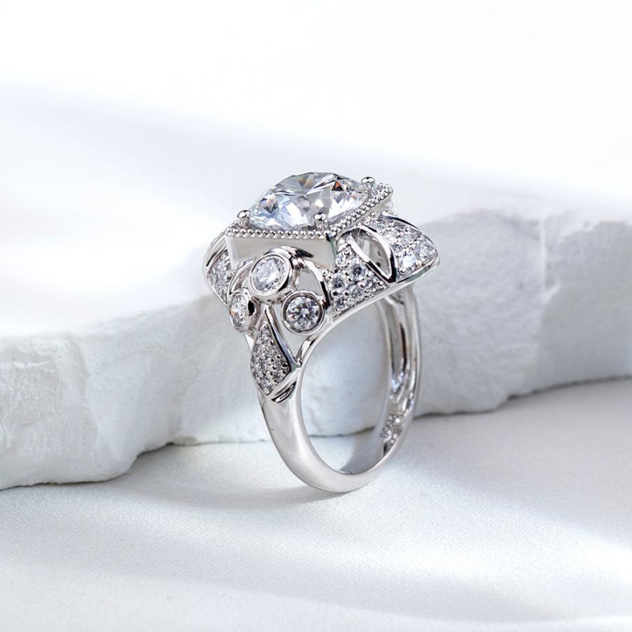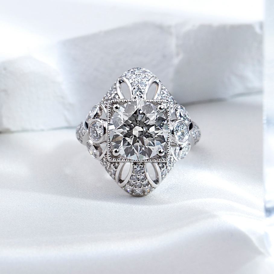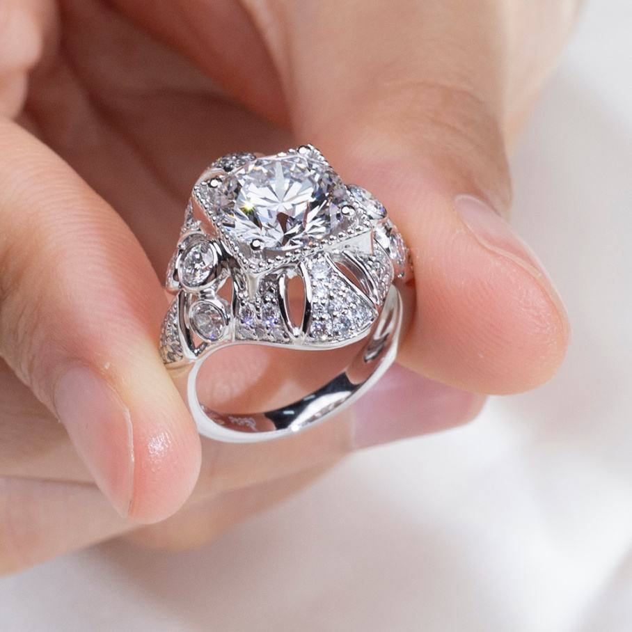 แหวนเพชรเมสซี่ จิวเวลรี่ แหวนเพชรคุณภาพสูงสั่งทำพิเศษ 3 กะรัต D VS2 PT950 ทรงกลม เพชรเลี้ยงในห้องปฏิบัติการ
