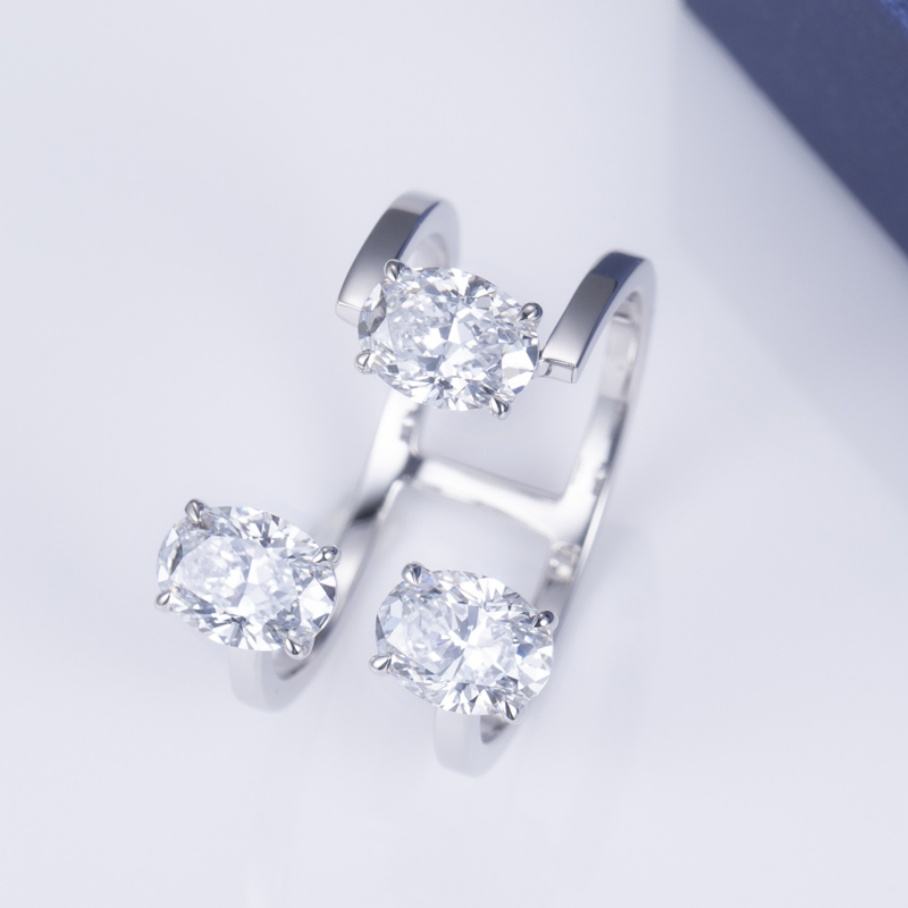 แหวนเพชรแล็บทรงรีสามเม็ด รุ่น MS-610 ดีไซน์เรียบหรูจาก Messi Jewelry