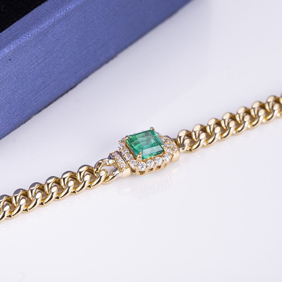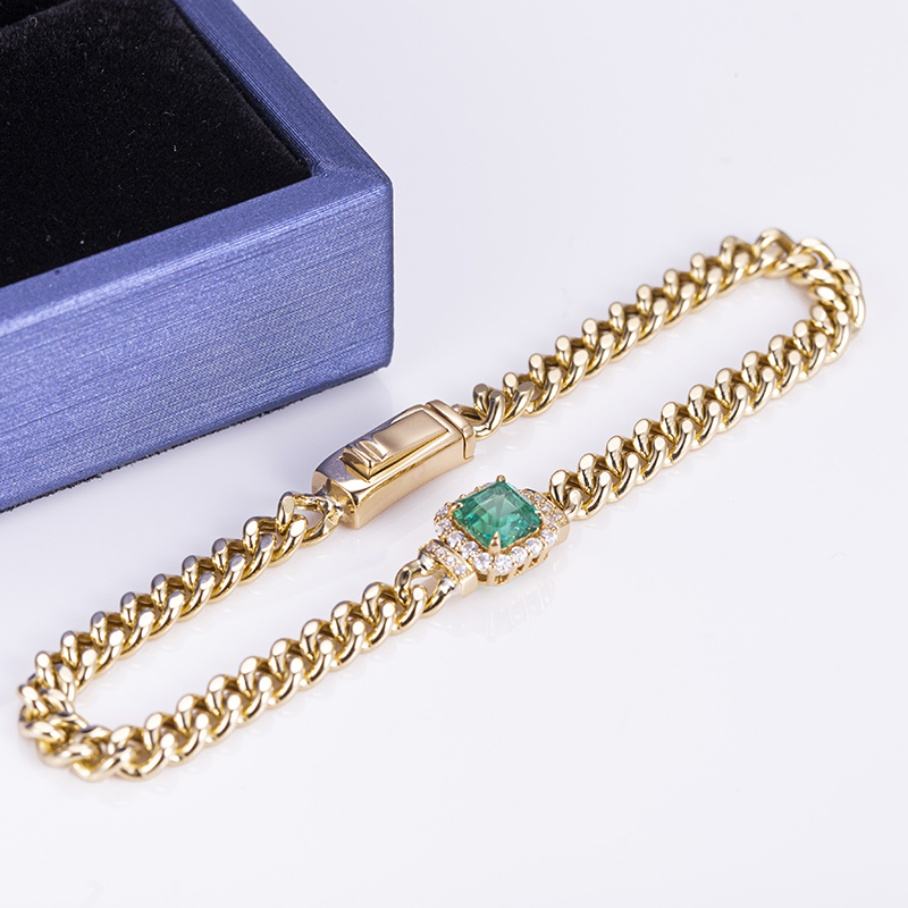 สร้อยข้อมือเมสซี่ รุ่น MSB-504 ทอง 10K 14K สีเหลือง ประดับมรกตสังเคราะห์ ดีไซน์แฟชั่นใหม่ สร้อยข้อมือผู้หญิงสำหรับงานแต่งงานและงานปาร์ตี้