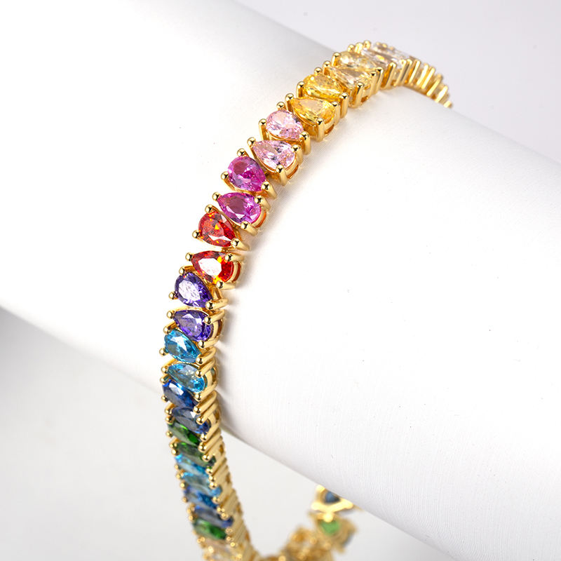 เครื่องประดับเมสซี่ MSB-527 กำไลข้อมือทองคำขาวประดับเพชร CZ สีเหลืองทอง