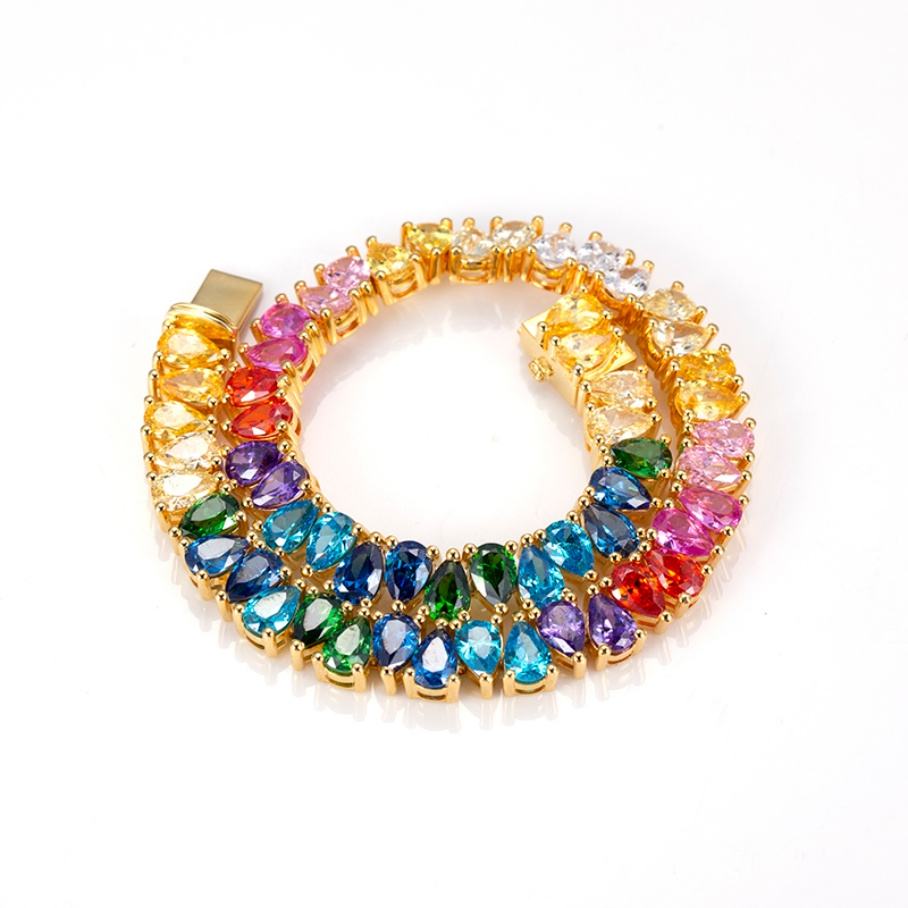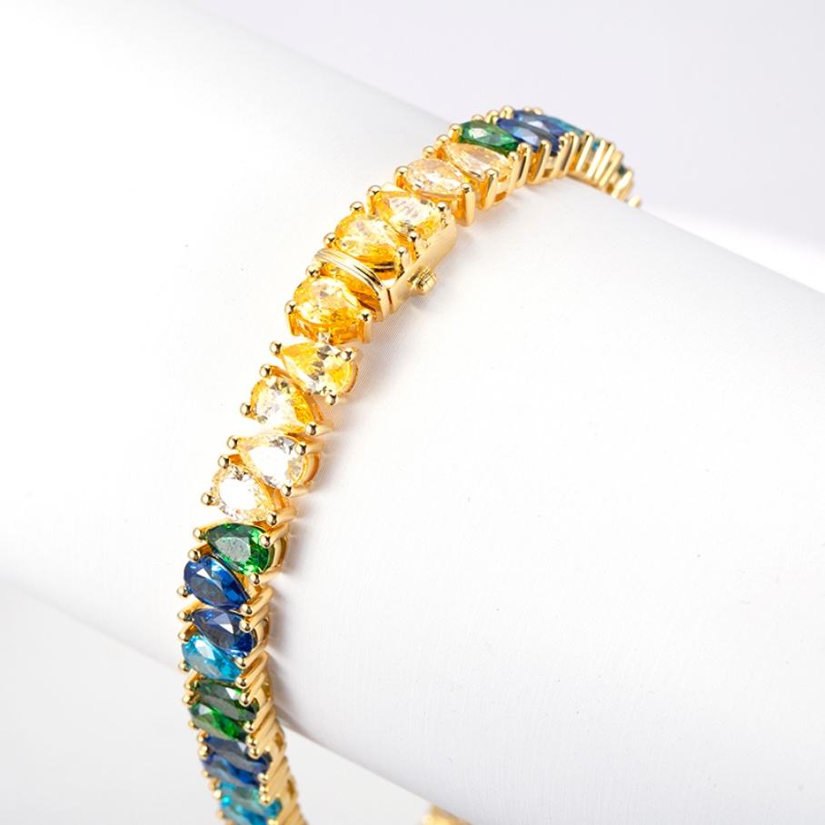 เครื่องประดับเมสซี่ MSB-527 กำไลข้อมือทองคำขาวประดับเพชร CZ สีเหลืองทอง