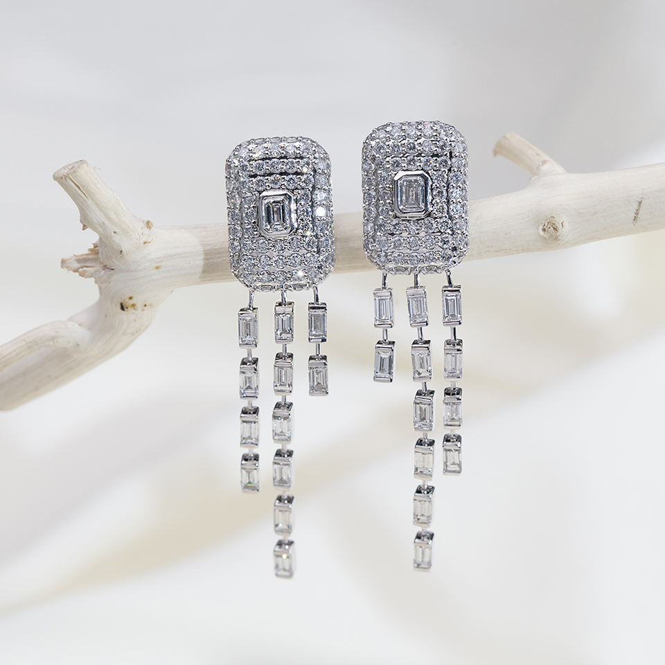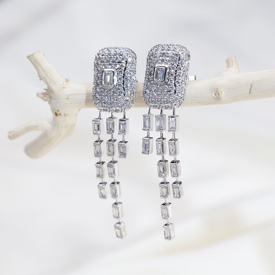 ต่างหูเพชรทองคำขาว 18K รุ่น MSE-869 ของ Messi Jewelry สำหรับผู้หญิง