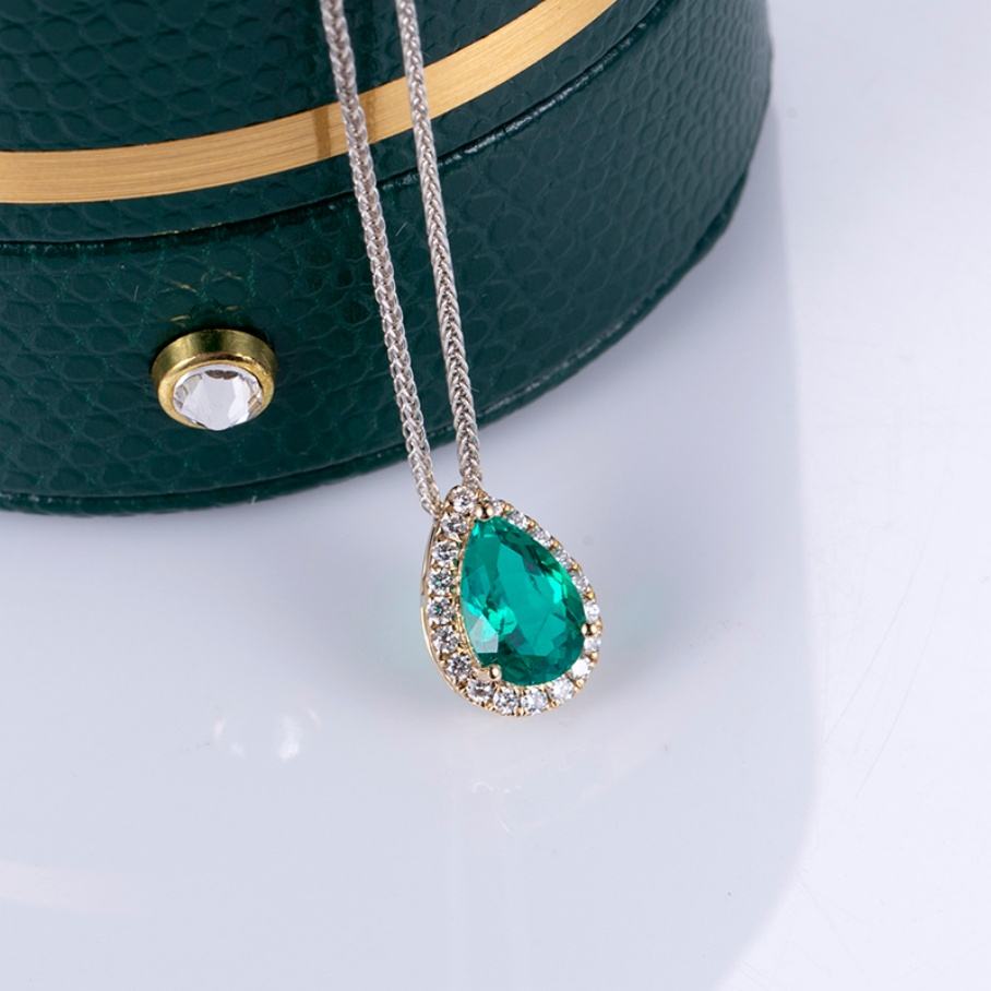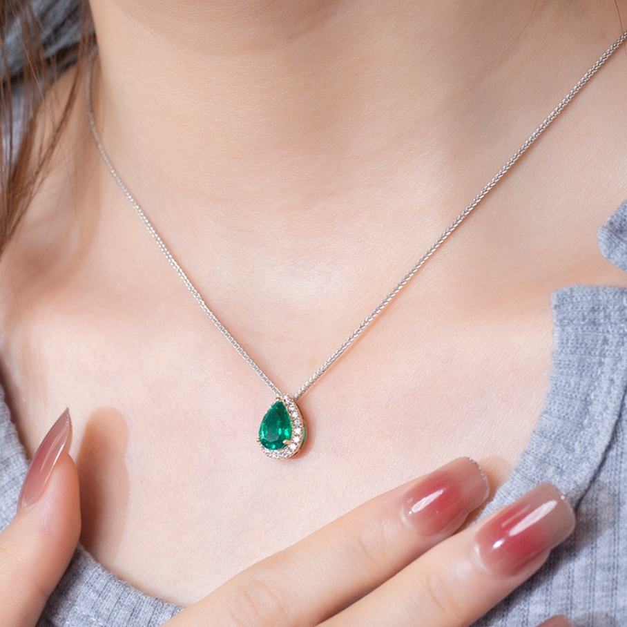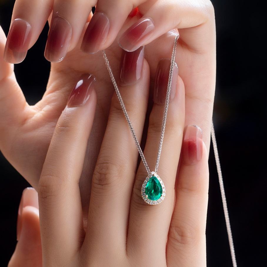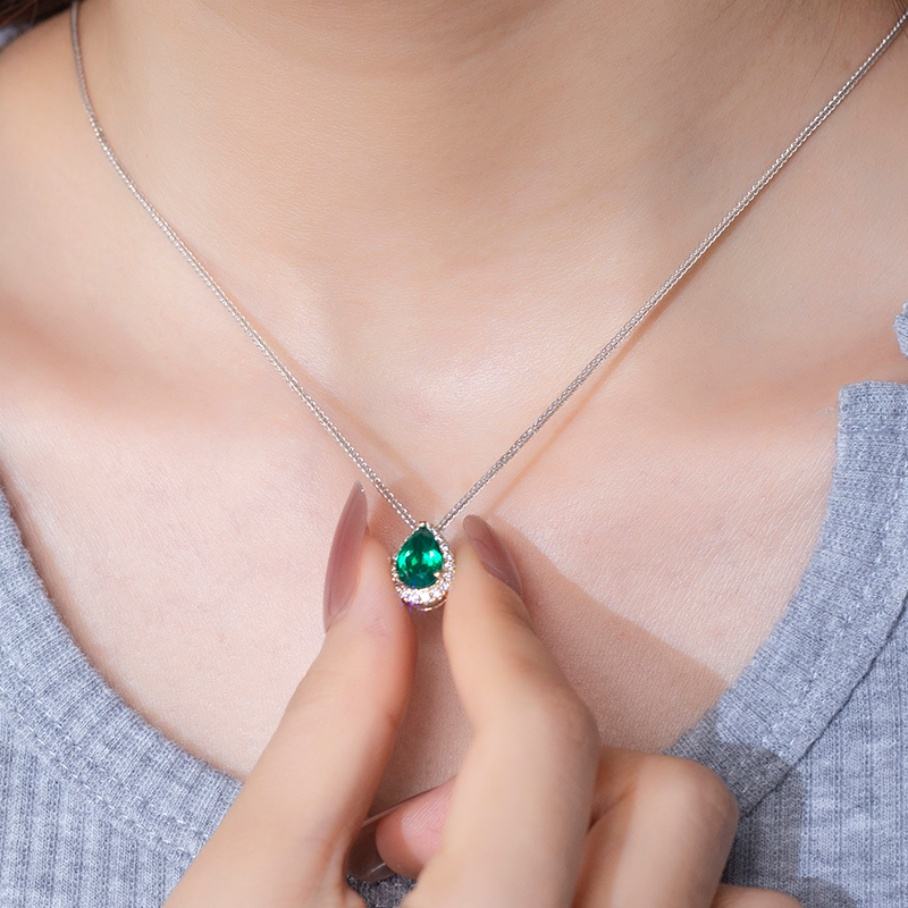 จี้เพชรเมสซี่ รุ่น MSN-636 ทอง 18K ประดับมรกตสังเคราะห์ทรงหยดน้ำ สำหรับงานปาร์ตี้/ผู้หญิง