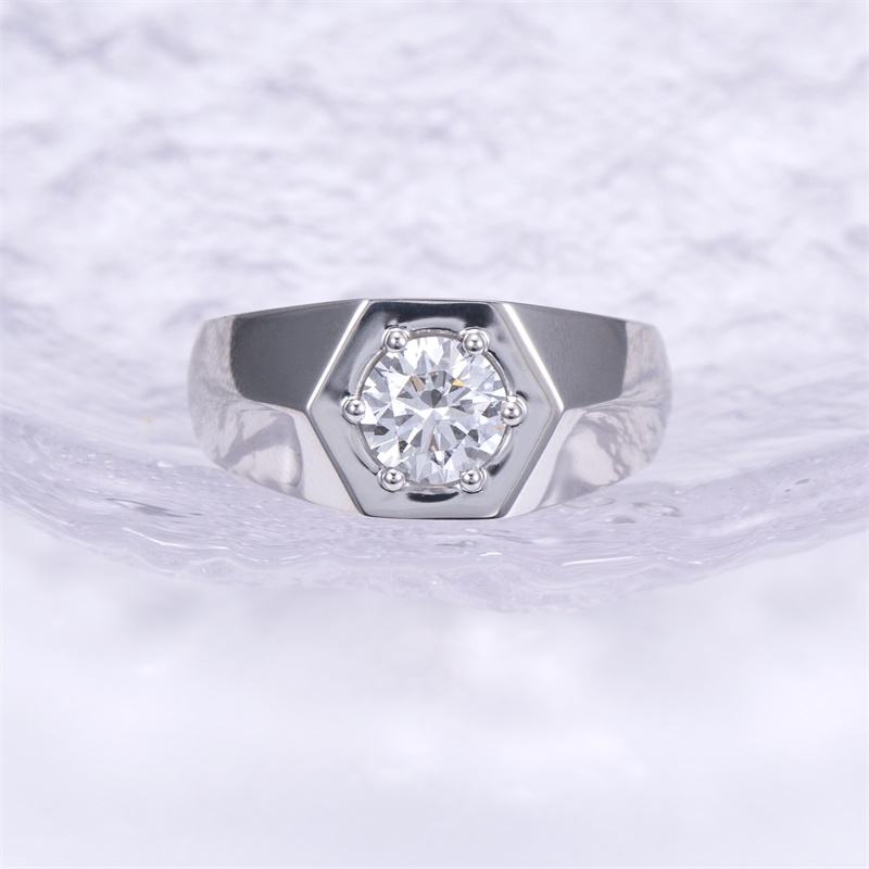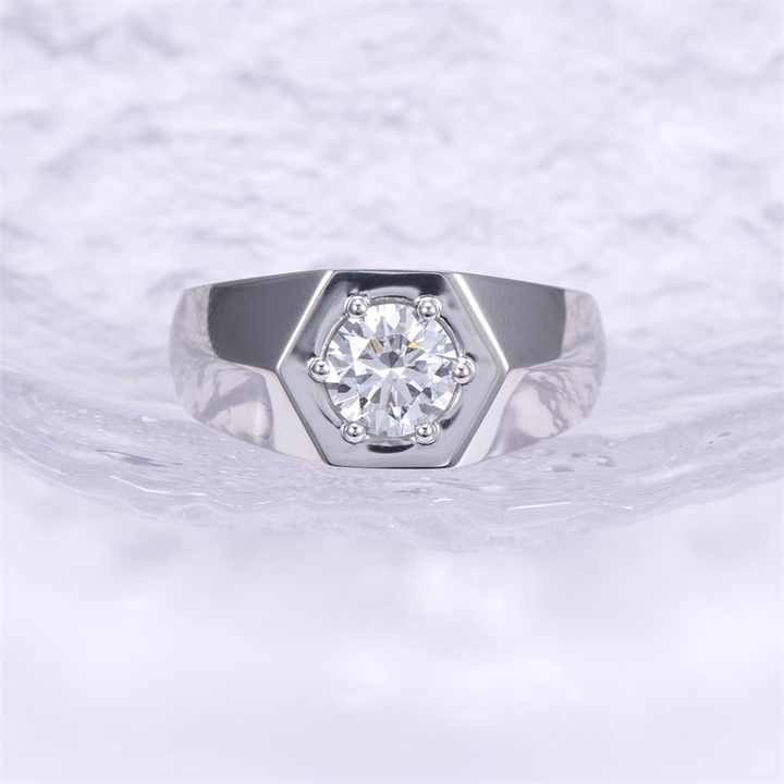 แหวนเพชรทรงกลมทองคำขาว 14K รุ่น MSR-1441 จาก Messi Jewelry สำหรับผู้ชาย