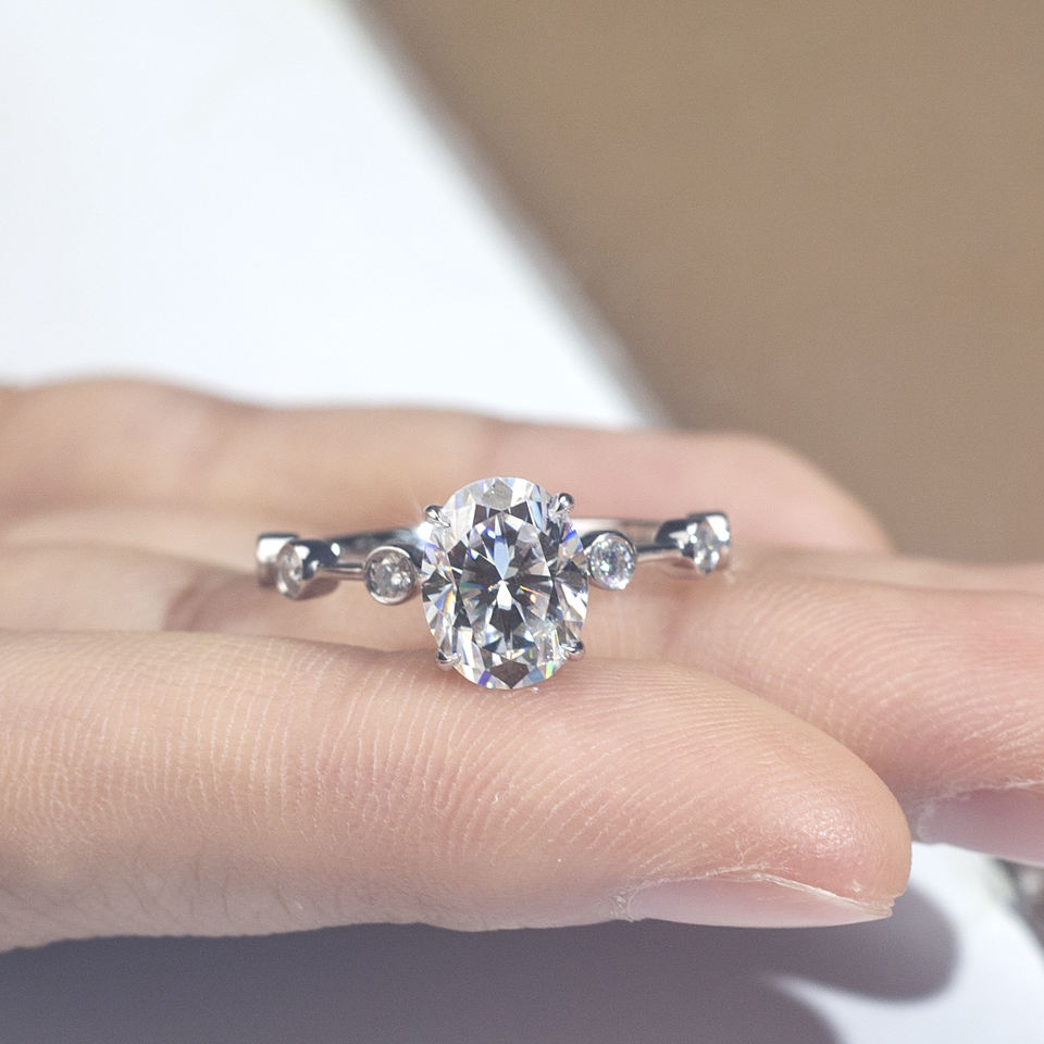 แหวนเพชรทรงรีทองคำขาว 9K รุ่น MSR-1468 จาก Messi Jewelry สำหรับผู้หญิง