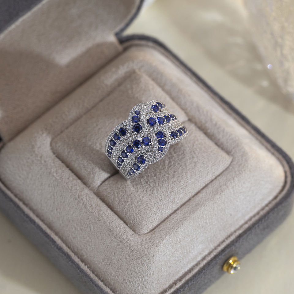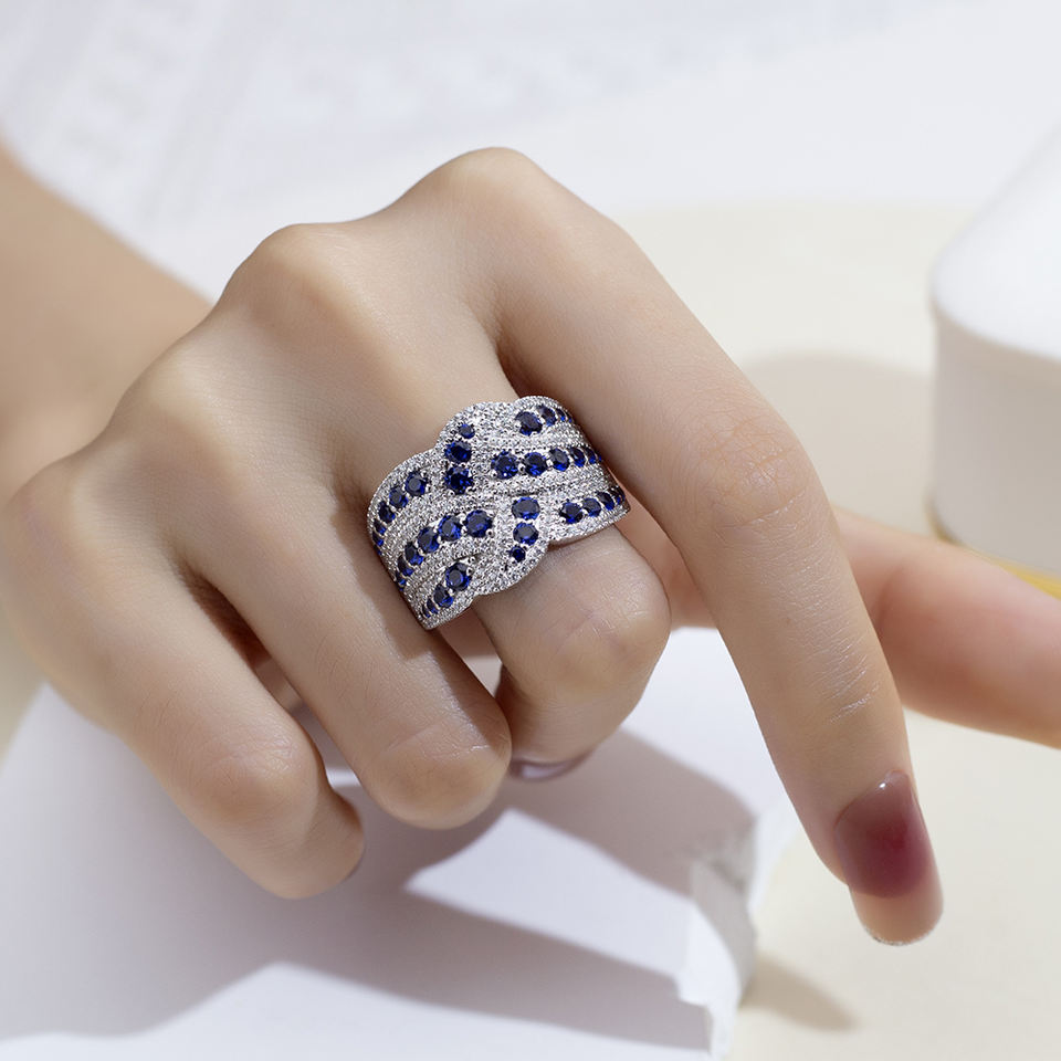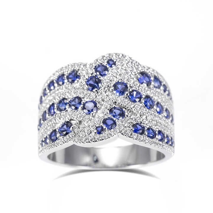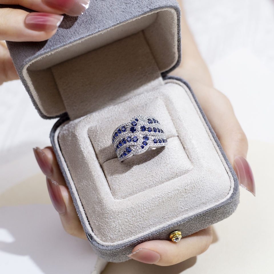 แหวนหมั้นเมสซี่ จิวเวลรี่ รุ่น MSR-1609 ชุบทองคำขาว S925 ประดับไพลินสีน้ำเงิน