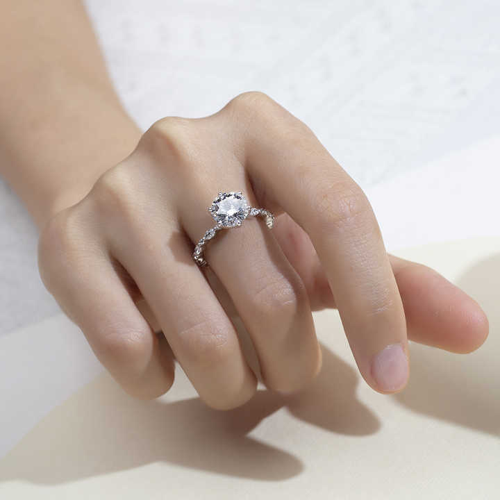 แหวนหมั้นเพชรเม็ดกลมทรงเฮโลแบบซ่อนประดับเพชรแล็บโกรว์ 18K ทองคำ รุ่น MSR-1662 จาก Messi Jewelry