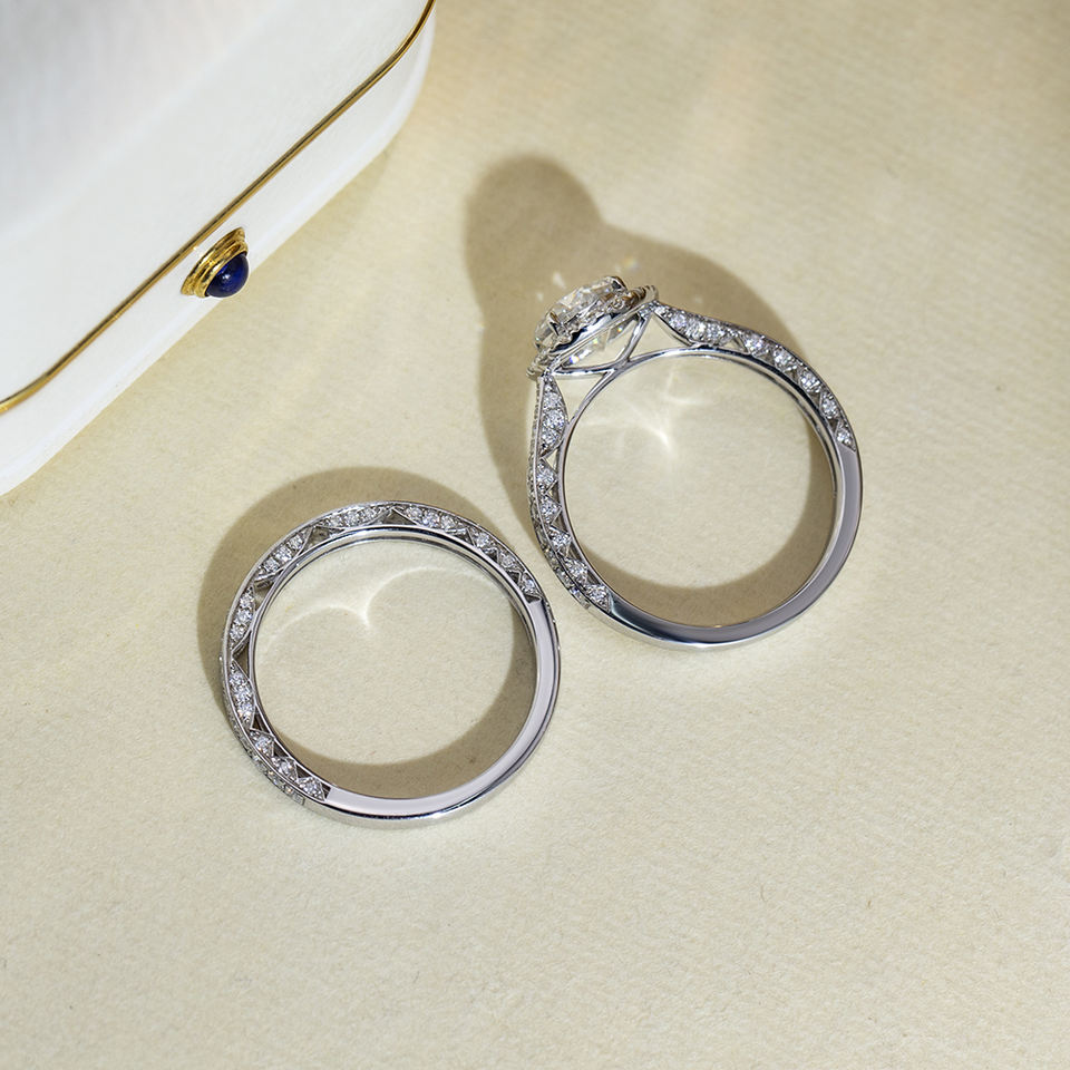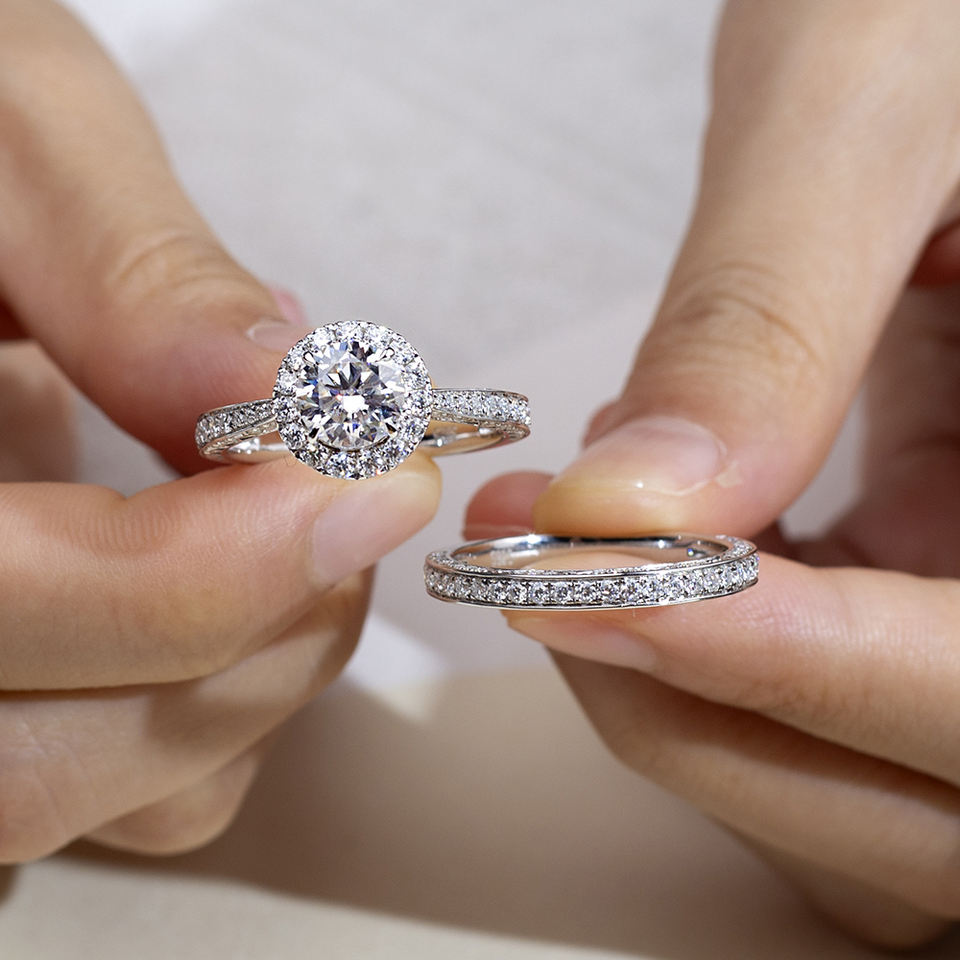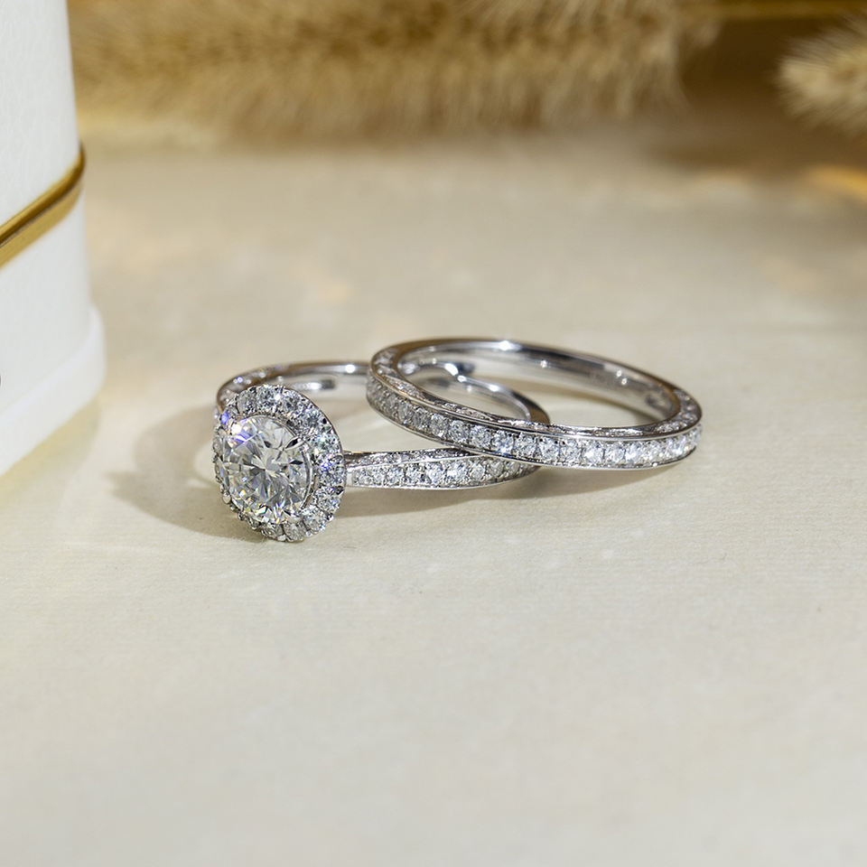 แหวนเพชรเมสซี่ รุ่น MSR-1666 ทรงกลม เงินแท้ 925 ประดับเพชรแบบ Halo เพชรเลี้ยงในห้องปฏิบัติการ
