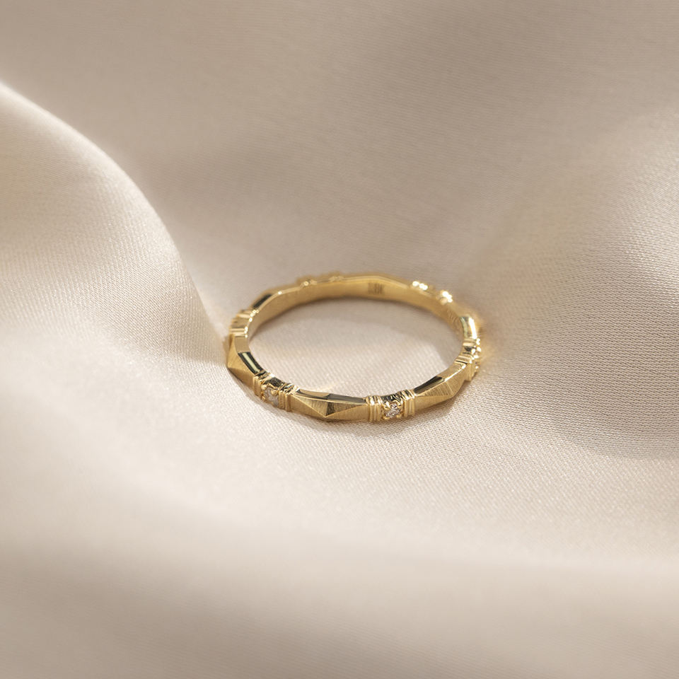 แหวนแต่งงานเพชรเม็ดกลมทรงเอ็มอาร์เอสอาร์-1667 ทองคำ 18K เพชรเลี้ยงในห้องปฏิบัติการ ของ Messi Jewelry