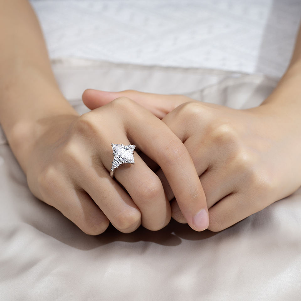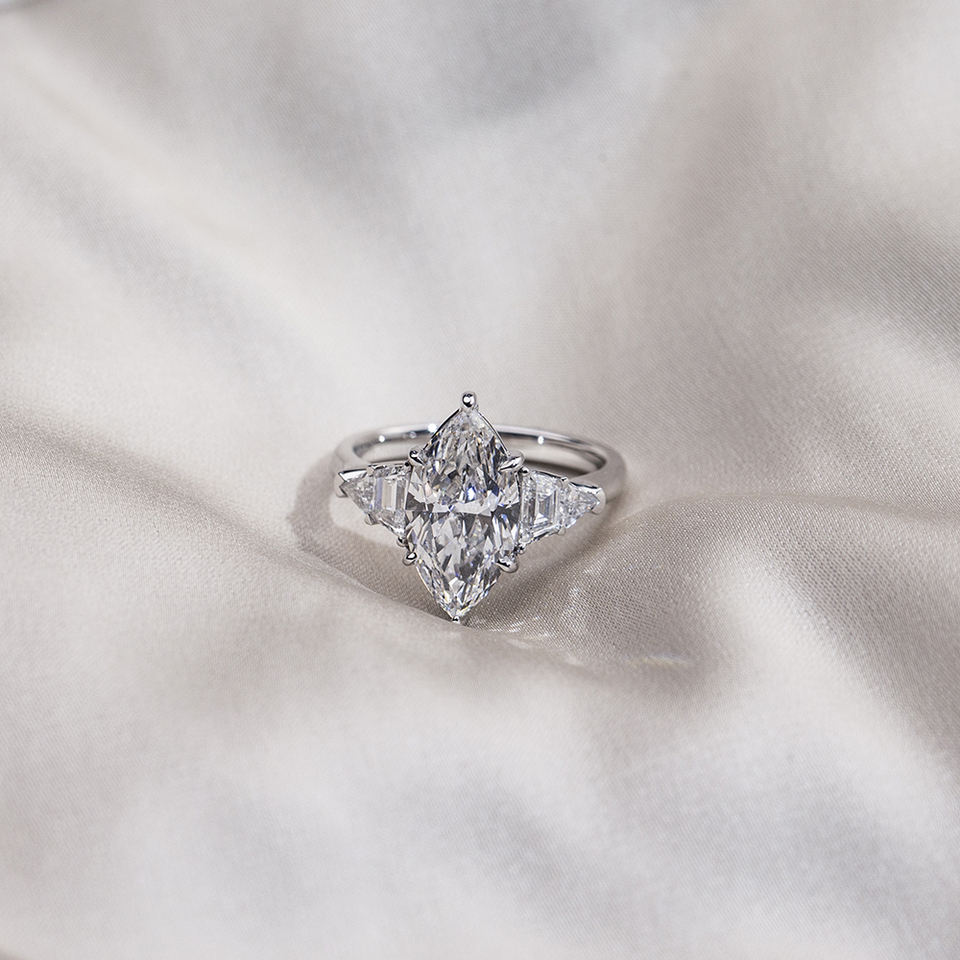 แหวนหมั้นเพชรเม็ดมาร์คีส์ทรงเหลี่ยมทองคำ 18K รุ่น MSR-1668 จาก Messi Jewelry สำหรับผู้หญิง