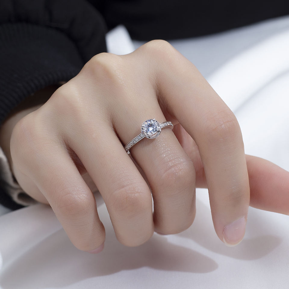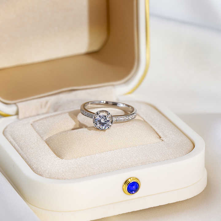 เครื่องประดับเมสซี่ MSR-1749 แหวนเพชรทรงกลมทองคำ 18K ดีไซน์คลาสสิก เพชรเพาะเลี้ยงสำหรับงานหมั้น