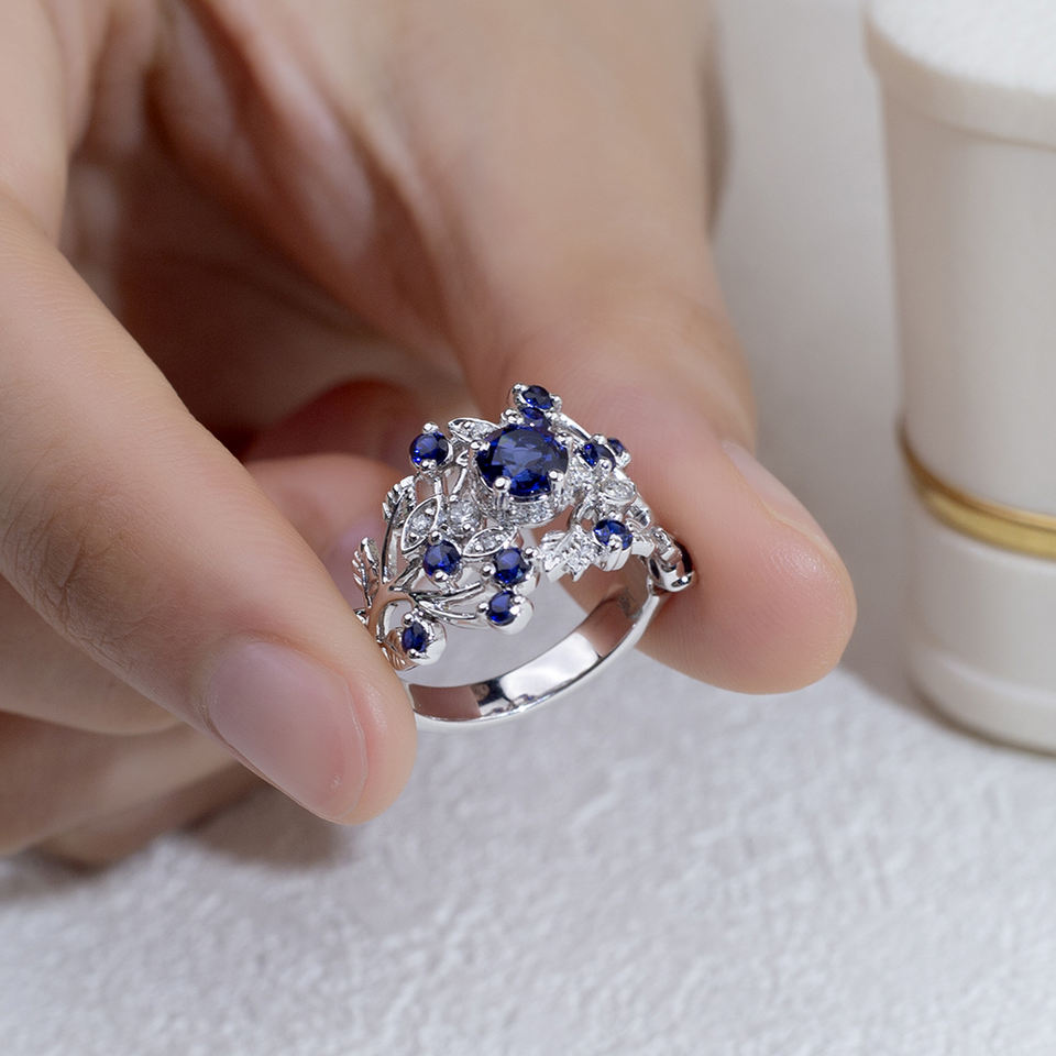 เครื่องประดับเมสซี่ MSR-1793 แหวนเพชรน้ำเงินทอง 14K สำหรับผู้หญิง