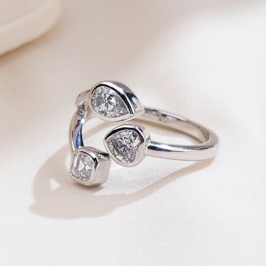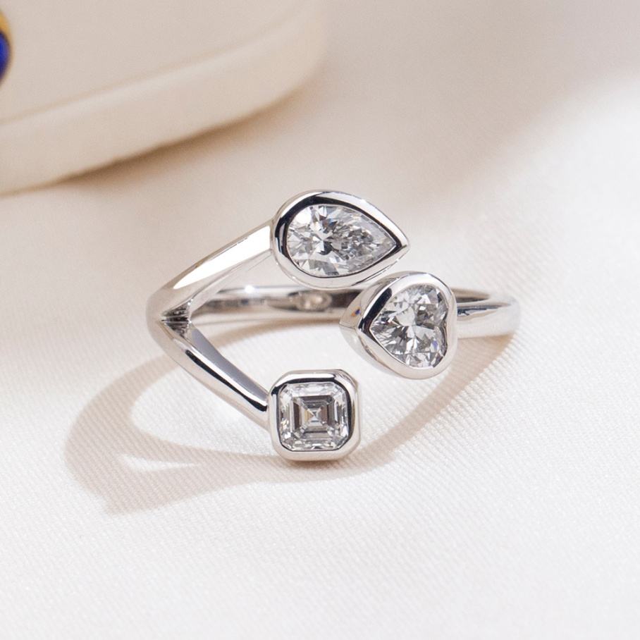 แหวนเพชรเมสซี่ รุ่น MSR-1855 แหวนเพชรสั่งทำพิเศษ วัสดุ PT950 ประดับเพชรทรงหัวใจ ทรงแอชเชอร์ และทรงลูกแพร์ ด้วยเพชรเลี้ยงในห้องปฏิบัติการสุดหรู