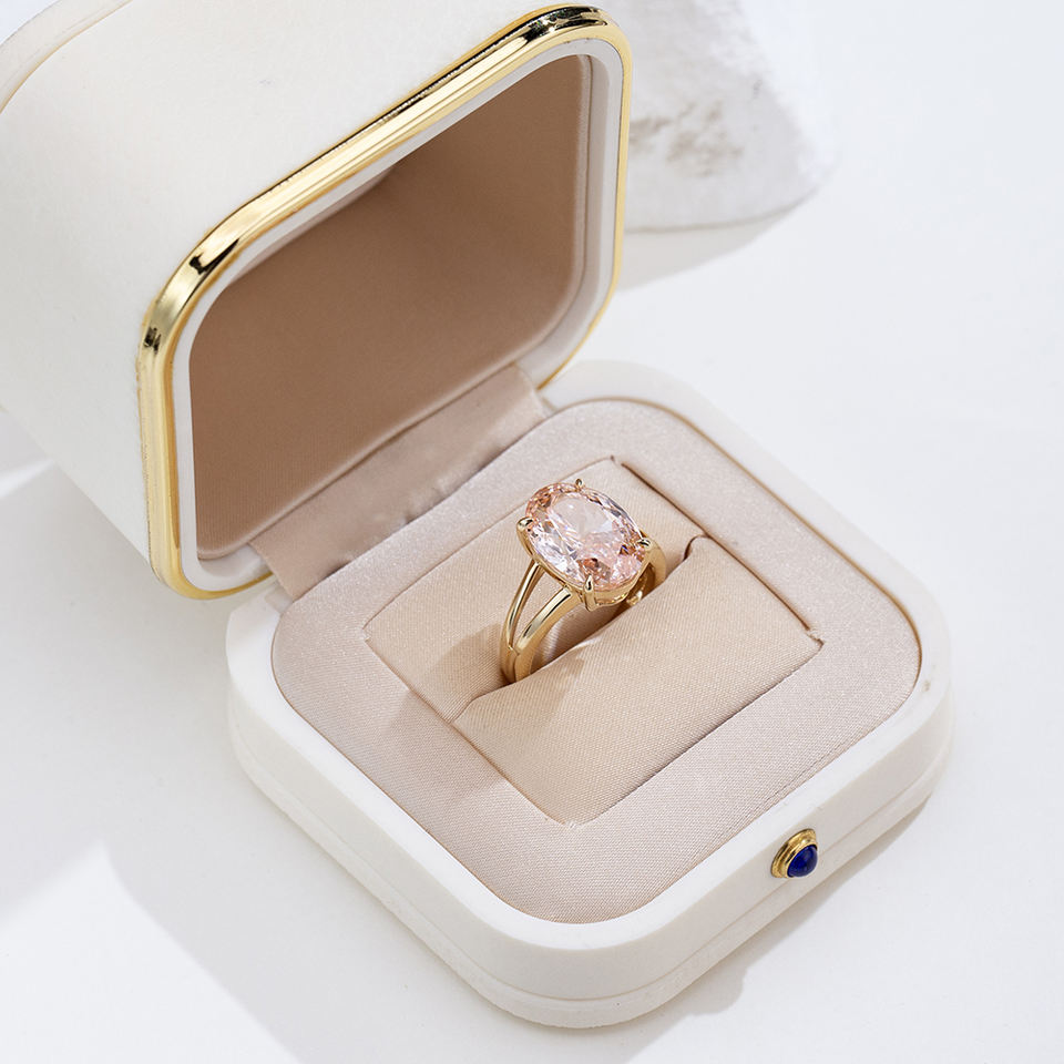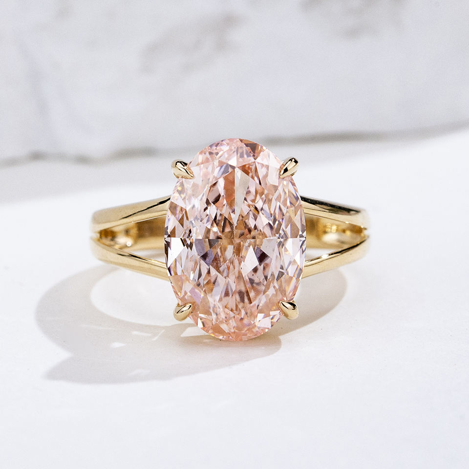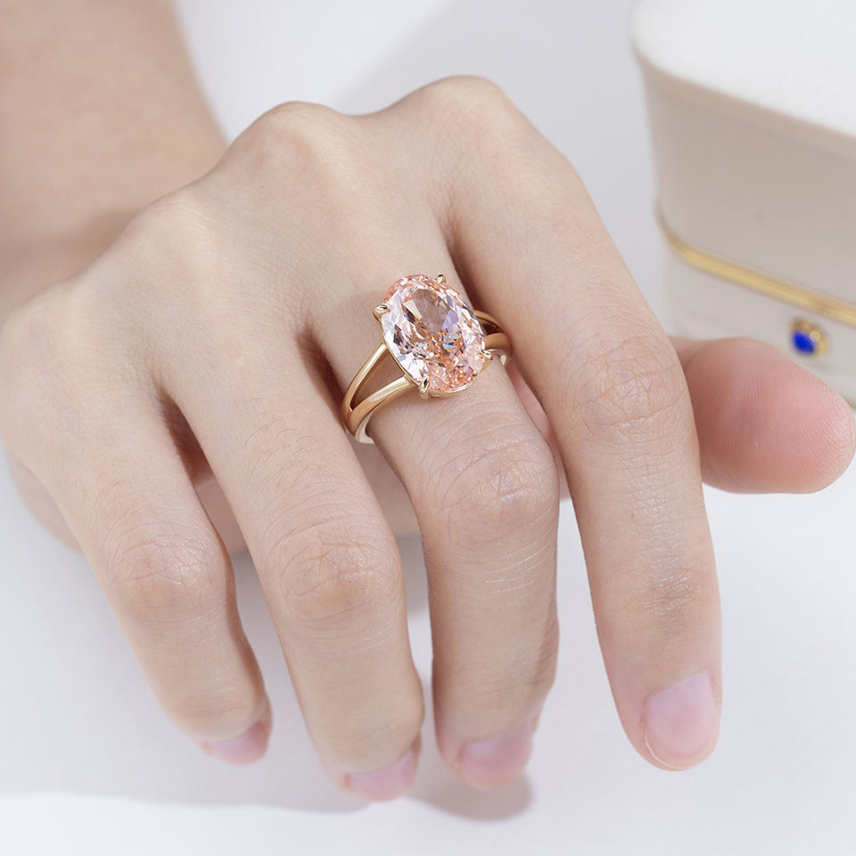 แหวนเพชรชมพูทรงรี 18K รุ่น MSR-2055 ของ Messi Jewelry สำหรับผู้หญิง