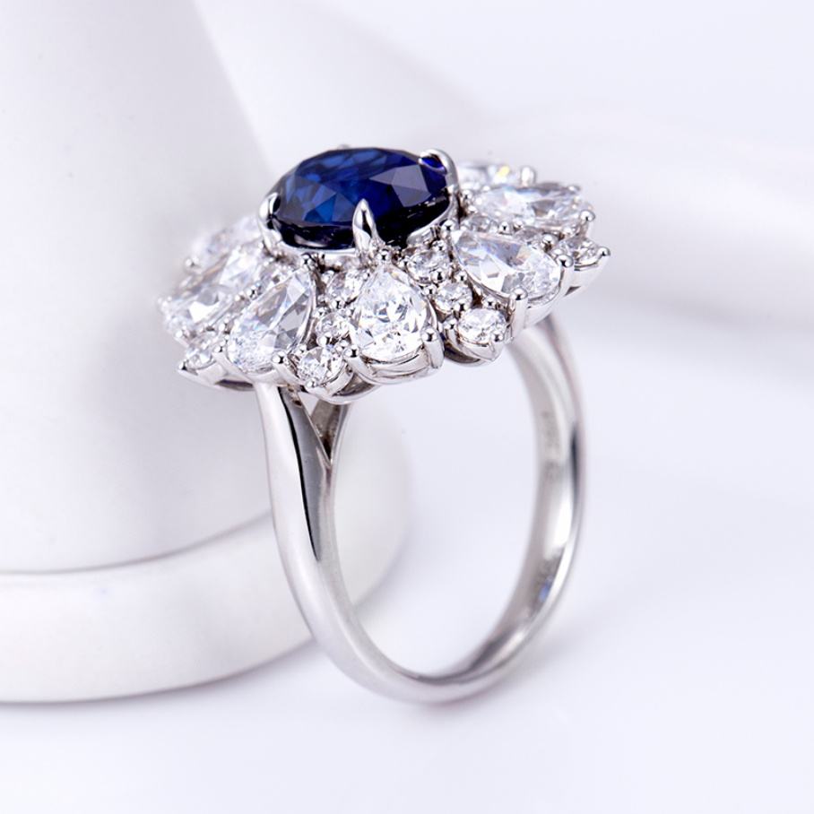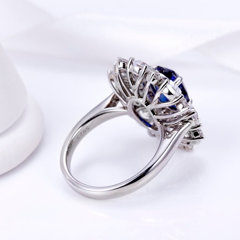 แหวนหมั้น/แหวนแต่งงาน รุ่น MSR-950 ทรงรี สีน้ำเงินรอยัล ประดับด้วยพลอยแซฟไฟร์สังเคราะห์จากแล็บ วัสดุเงินแท้ S925 ดีไซน์คลาสสิก พร้อมเพชร เหมาะเป็นของขวัญ