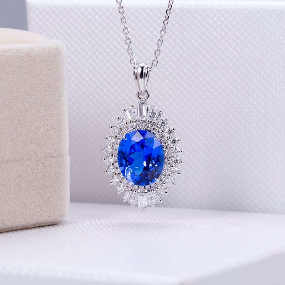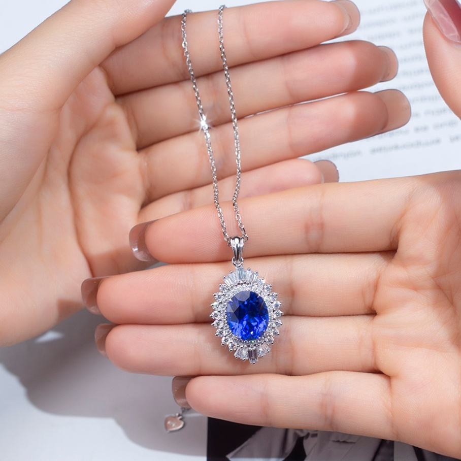 สร้อยคอจี้เพชรพลอยสปิเนลทรงรีสีฟ้ามหาสมุทรคุณภาพ AAA รุ่น Messi JewelryMSN-655 น้ำหนัก 5.97 กะรัต สำหรับผู้หญิง เหมาะสำหรับงานหมั้นหรืองานเลี้ยงอาหารค่ำ
