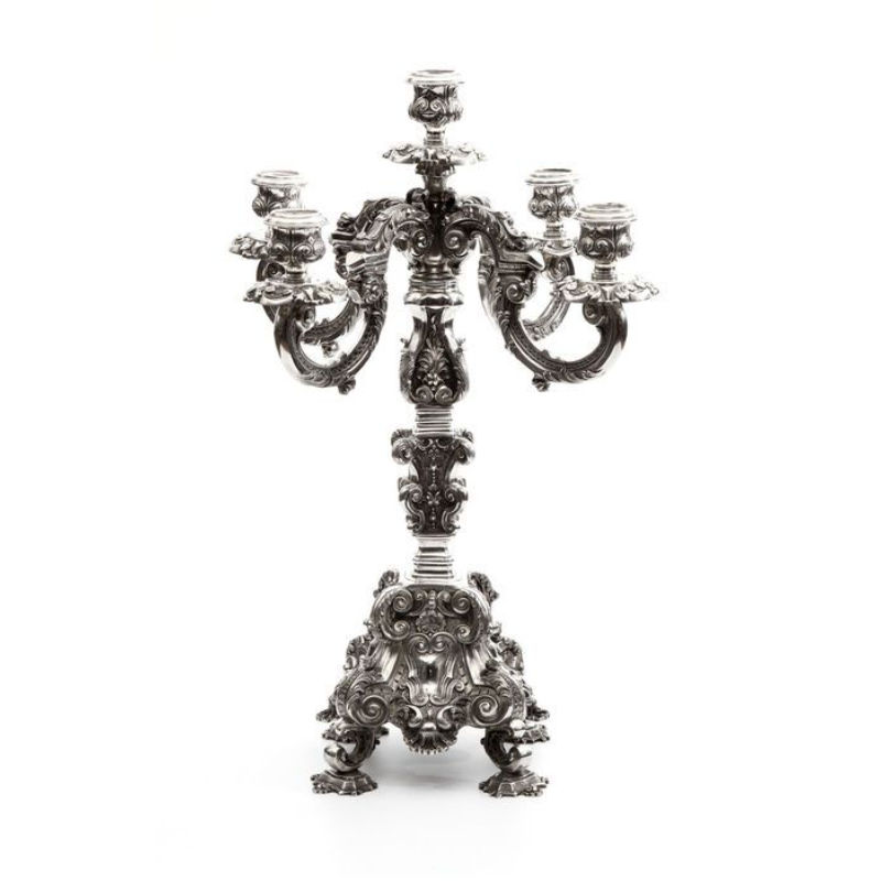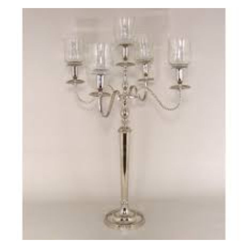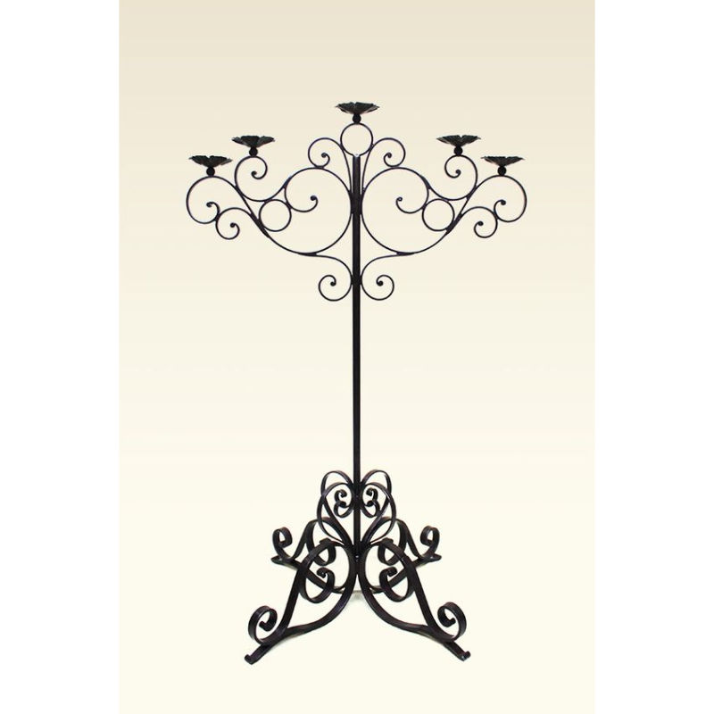 เชิงเทียนโลหะ5แขนสีดำเคลือบผงยาวสีดำทำจากเหล็กตกแต่งพื้นโต๊ะออกแบบสำหรับวางเทียน