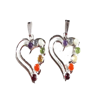 จี้ห้อยคอรูปหัวใจโลหะ 7 จักระ ชุบเงินโบราณ ทำจากโลหะผสมสังกะสี ประดับด้วยพลอย ศาสนาพุทธทิเบต จี้แฟชั่น
