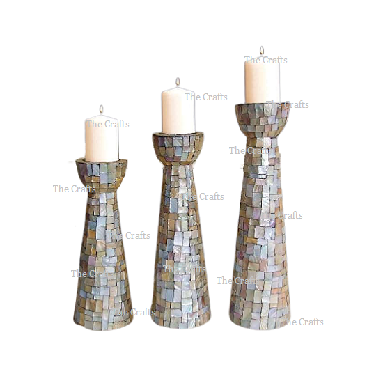 ชุดเชิงเทียนโลหะและแม่มุกมีสามขนาดที่แตกต่างกันสำหรับการตกแต่งที่วางเทียน