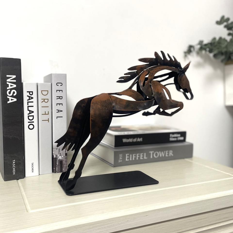 ประติมากรรมรูปม้ากระโดดโลหะโบราณ เหมาะสำหรับตกแต่งบ้านหรู โชว์ในล็อบบี้ และเป็นของประดับตกแต่งบนโต๊ะ ศิลปะสมัยใหม่