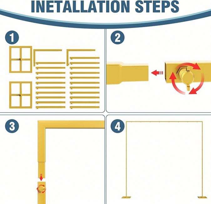 ขาตั้งฉากหลังโลหะพร้อมฐานรองรับแบบตะปู โครงซุ้มสวน โครงท่อและผ้าม่านฉากหลัง