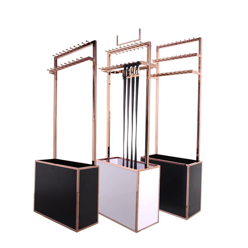 ชั้นวางเข็มขัดโลหะสำหรับร้านเสื้อผ้าในห้างสรรพสินค้า ชั้นวางแบบหลายชั้นพร้อมตะขอสำหรับโชว์และจัดเก็บเข็มขัด