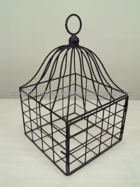 กรงนกโลหะสีดำทำมือกรงนกเคลือบผงโลหะดีไซน์ใหม่