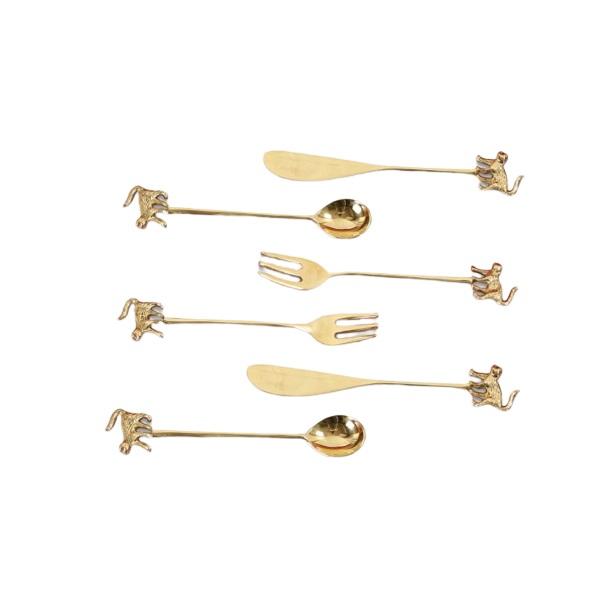 ชุดเครื่องใช้บนโต๊ะอาหารทองเหลืองพร้อมขัดเงาสำหรับบ้านร้านอาหารและโรงแรมชุดช้อนส้อมทองเหลืองดีไซน์ลิง