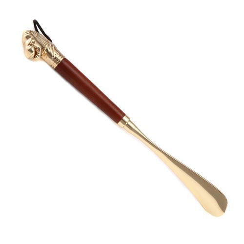 แตรโลหะทองเหลืองสีทองพร้อมด้ามไม้