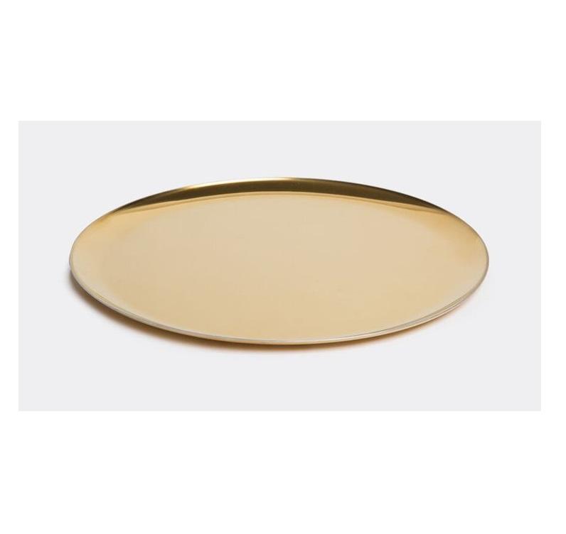 ถาดเสิร์ฟทองเหลืองทรงกลมสำหรับใช้ในบ้านและโรงแรม ถาดเสิร์ฟอาหารและเครื่องดื่มบนโต๊ะอาหาร ถาดทองเหลืองสำหรับตกแต่งบ้าน
