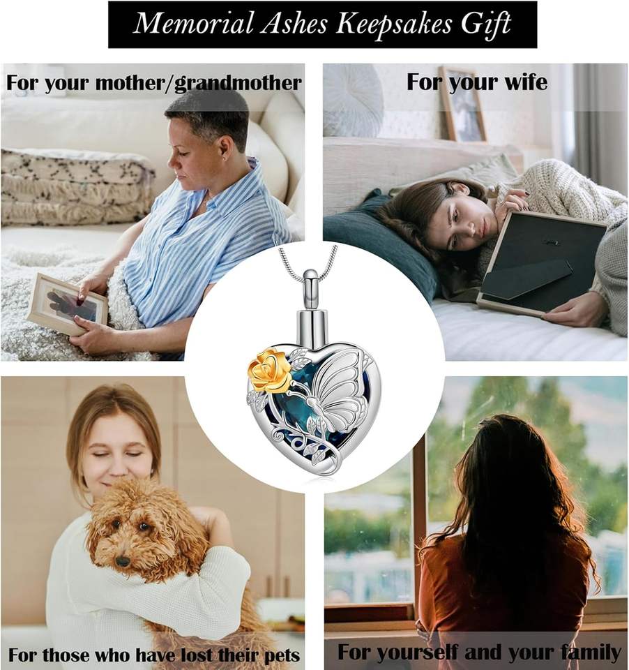 สร้อยคอโกศรูปผีเสื้อโลหะแบบทันสมัยสำหรับผู้หญิงจี้รูปหัวใจสำหรับซากศพ