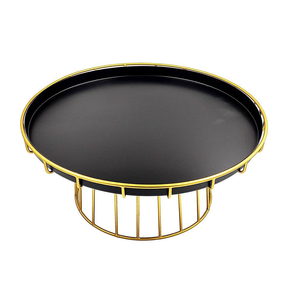 โลหะยืนเค้กชั้นเดียวยืนเค้กสีทองและสีดำ-10นิ้ว