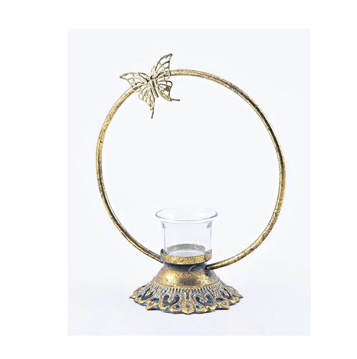 เชิงเทียนโลหะสำหรับตกแต่งโต๊ะ Eid Mubarak เชิงเทียนสีเหลืองเคลือบด้วยผง