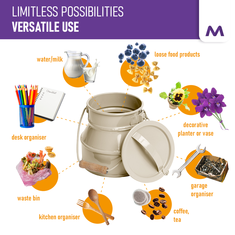 ถังโลหะพร้อมฝาปิดด้ามจับขนาด500มล. ถังโลหะสำหรับตกแต่งกระป๋องโลหะสไตล์วินเทจ