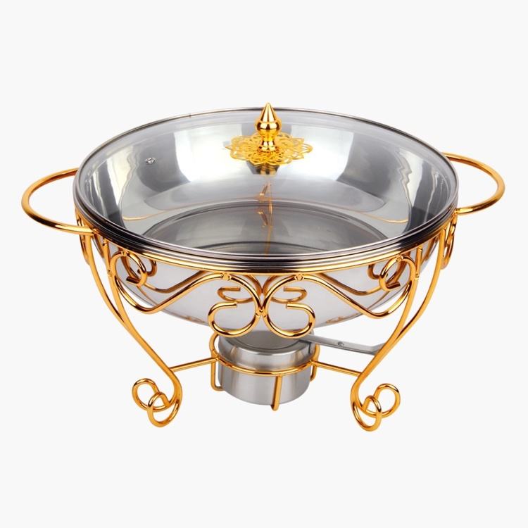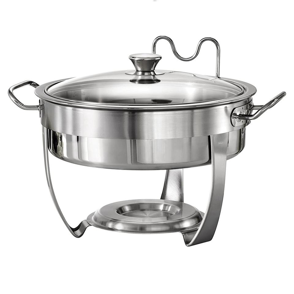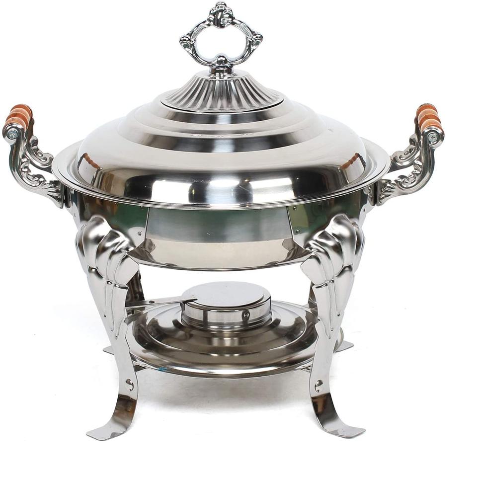 ชามอุ่นอาหารทำจากสเตนเลสขัดเงาพร้อมขาตั้งหัวเตาดีไซน์ทำด้วยมือ